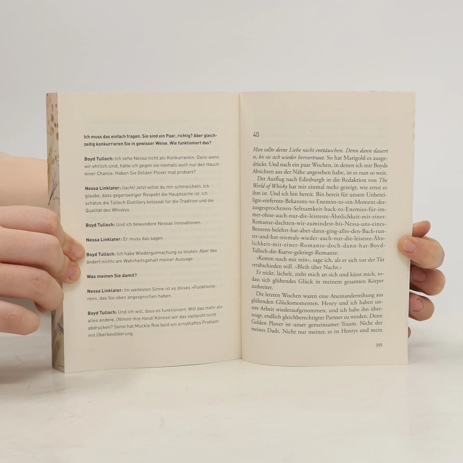Eine Liebe, die Wellen schlägt Als älteste von drei Schwestern musste Nessa viel zu früh erwachsen werden. Mit ihrer eigenen Mikrodestillerie erfüllte sie sich endlich einen Traum, und langsam gewinnt ihr Whisky auch über Shetland hinaus Bekanntheit. Als die nordschottische Whiskymesse ansteht, hat sie vor allem ein Ziel: Sie will es ihrem Erzfeind Boyd Tulloch, Erbe der größten Destillerie der Insel, ein für alle Mal zeigen. Doch schon bald muss Nessa zugeben, dass Boyd nicht nur ein arroganter, sondern auch ein ziemlich attraktiver Idiot ist. Und der Konkurrenzkampf wird ganz neu angeheizt.