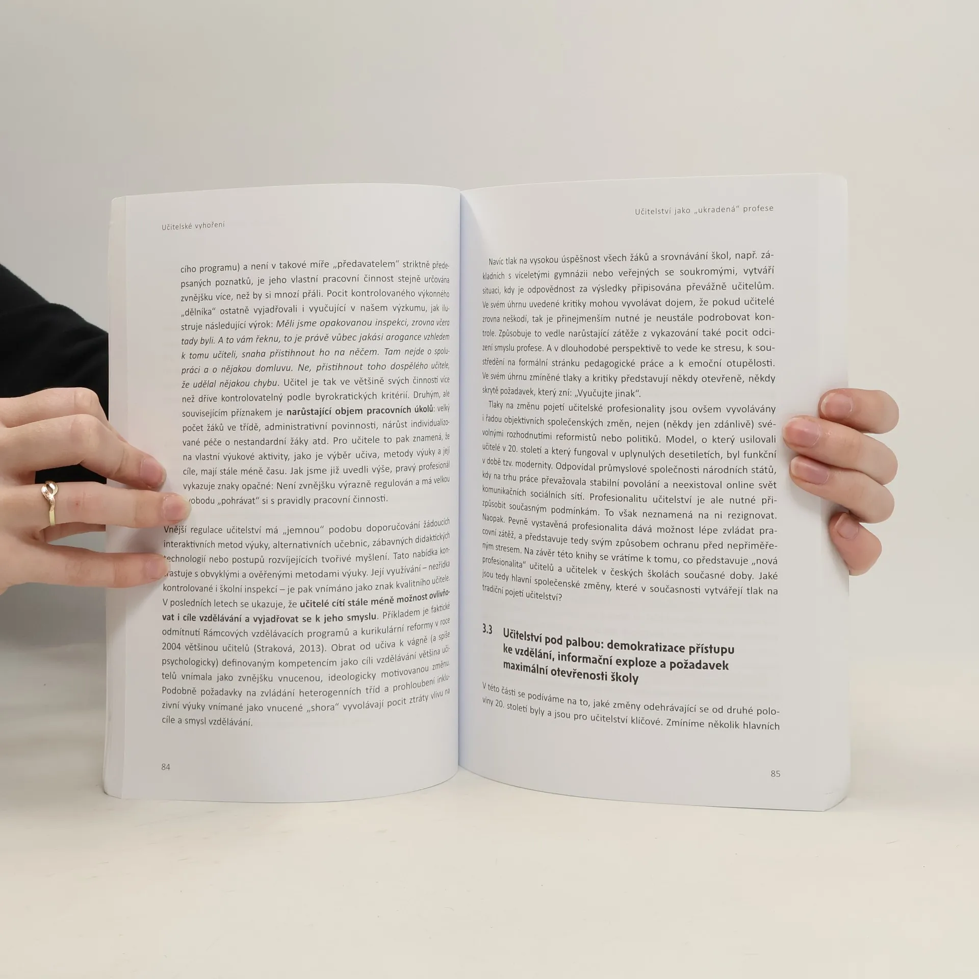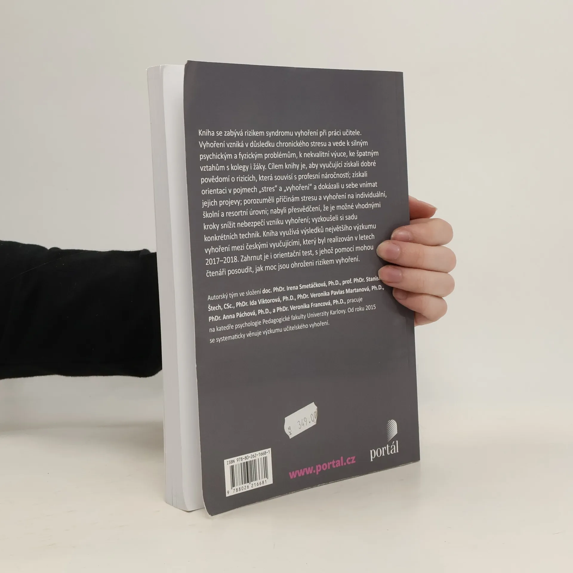 Kniha se zabývá rizikem syndromu vyhoření při práci učitele. Vyhoření vzniká v důsledku chronického stresu a vede k silným psychickým a fyzickým problémům, k nekvalitní výuce, ke špatným vztahům ke kolegům a žákům. Cílem knihy je, aby vyučující získali dobré povědomí o rizicích, která souvisejí s profesní náročností, získali orientaci v pojmech „stres“ a „vyhoření“ a dokázali u sebe vnímat jejich projevy, porozuměli příčinám stresu a vyhoření na individuální, školní a resortní úrovni, nabyli přesvědčení, že je možné vhodnými kroky snížit nebezpečí vzniku vyhoření, vyzkoušeli si sadu konkrétních technik. Kniha využívá výsledků největšího výzkumu vyhoření mezi českými vyučujícími, který byl realizován v letech 2017–2018.