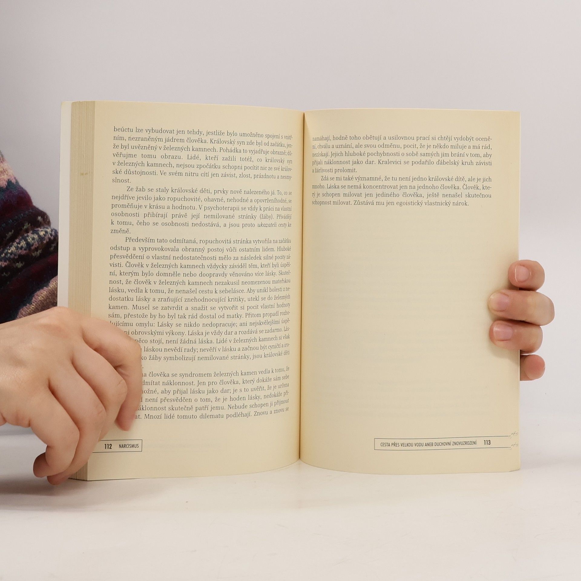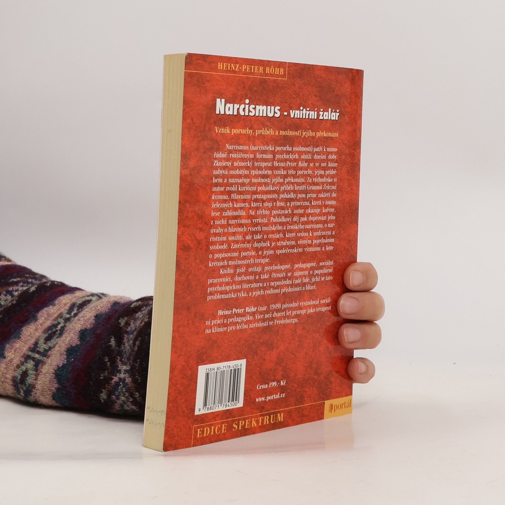 Vznik poruchy, průběh a možnosti jejího překonání. Narcismus (narcistická porucha osobnosti) patří k mimořádně rozšířeným formám psychických obtíží dnešní doby. Zkušený německý terapeut Heinz-Peter Röhr se ve své knize zabývá osobitým způsobem vzniku této poruchy, jejím průběhem a naznačuje možnosti jejího překonání. Za východisko si autor zvolil kuriózní pohádkový příběh bratří Grimmů „Železná kamna“. Hlavními protagonisty pohádky jsou princ zakletý do železných kamen, která stojí v lese a princezna, která v tom lese zabloudila. Na těchto postavách autor ukazuje kořeny, z nichž narcismus vyrůstá. Pohádkový děj pak doprovází jeho úvahy o hlavních rysech mužského a ženského narcismu, o narcistním soužití, ale také o cestách, které vedou k uzdravení a svobodě. Závěrečný doplněk je stručným, věcným pojednáním o popisované poruše, o jejím společenském významu a konkrétních možnostech terapie.