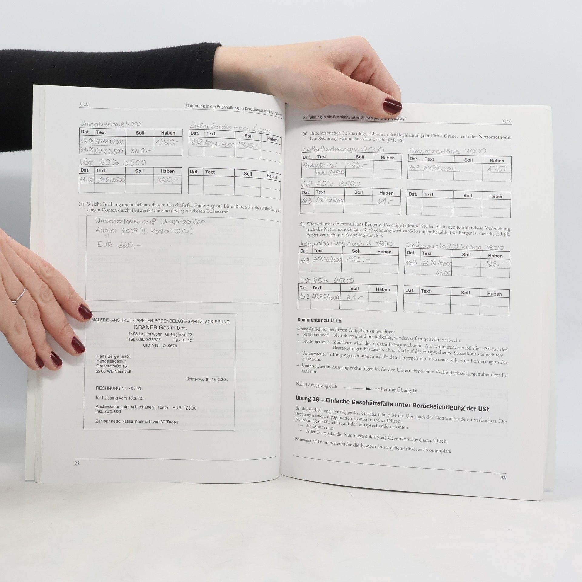 Das Werk bietet eine Einführung in die Buchhaltung und Bilanzierung, die es allen Interessierten ermöglicht, sich diese Problembereiche im Selbststudium zu erarbeiten: - die Verbuchung der laufenden Geschäftsfälle unter Berücksichtigung steuerlicher Aspekte - die Umsatzsteuer und deren Verbuchung - die Verbuchung von Import- und Exportgeschäften - innergemeinschaftlicher Erwerb und innergemeinschaftliche Lieferung - Grundlegende Probleme der Bilanzierung und steuerliche Gestaltung - eine kurze Einführung in die Darstellung des Jahresabschlusses nach GAAP und IFRS/IAS - die Führung von Nebenbüchern (z. B.: Kassabuch) - die Einnahmen-Ausgabenrechnung Die gesetzlichen und steuerlichen Bestimmungen entsprechen dem Stand von Juni 2008, die Bestimmungen des Unternehmensgesetzbuches (UGB) wurden eingearbeitet. Der verwendete Kontenplan entspricht der Neufassung des österreichischen Einheitskontenrahmens.