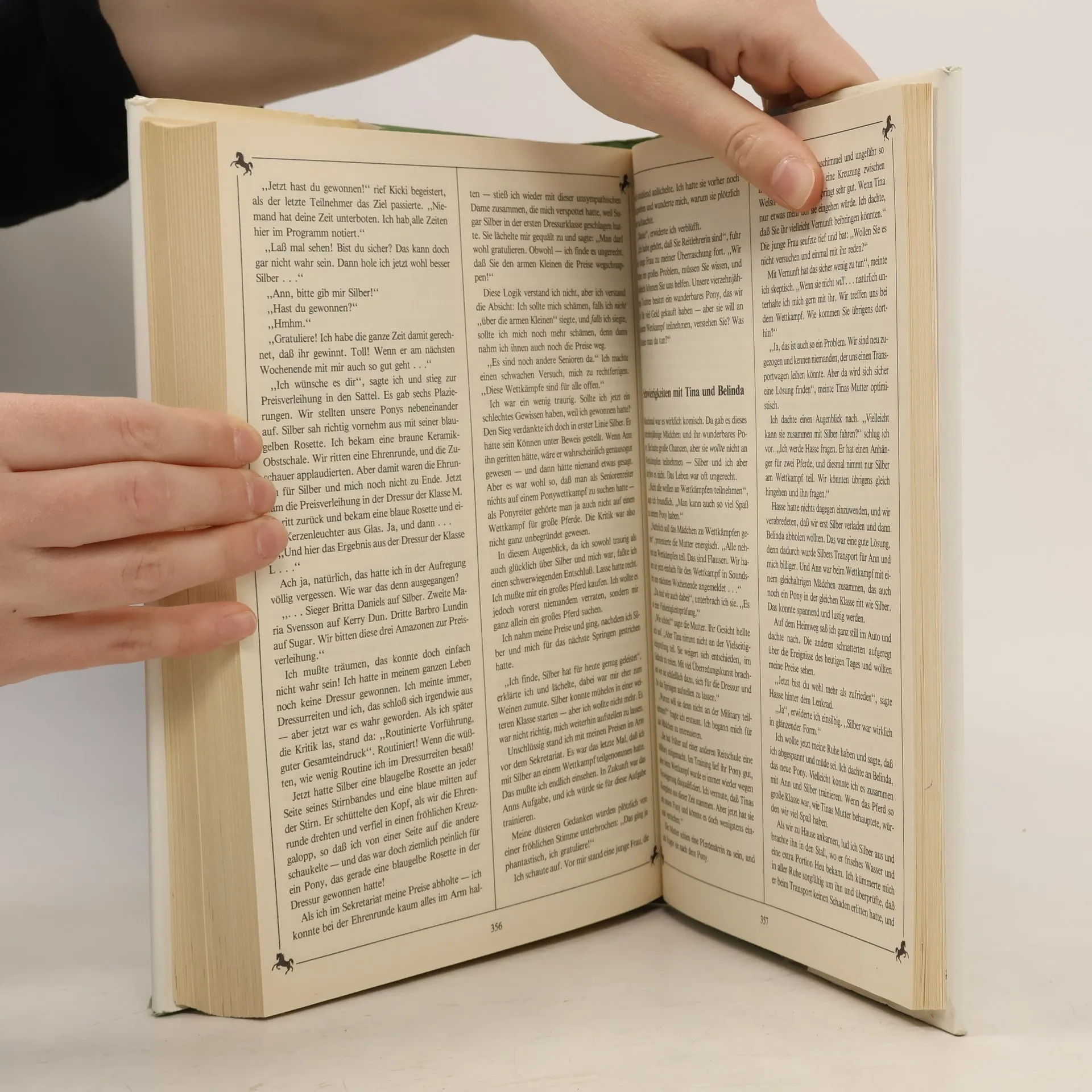 Nachdem in den 70er Jahren die 11 Einzeltitel erschienen (vgl. z.B. BA 2/77, 483), gab der Verlag 1989 einen preiswerten Sammelband mit 3 Titeln über die frisch-fröhliche Reiterin Britta heraus (BA 5/89). Jetzt wird noch einmal nachgelegt, indem die 11 Titel in einem Band zu einem Super-Sonderpreis erscheinen. Sicher, die Erlebnisse mit dem ersten Pony, dem Reitabzeichen, den ersten Turniersiegen bis zur Berufsentscheidung zur Reitlehrerin sind oberflächlich in der Handlung und stets heile (Pferde-)Welt, wie Jutta Stiller bereits damals erkannte. Doch da die Autorin sachlich korrekt und kenntnisreich zu erzählen vermag, sollten Bibliotheken zerlesene Exemplare auf diese angenehm preiswerte Art ersetzen
