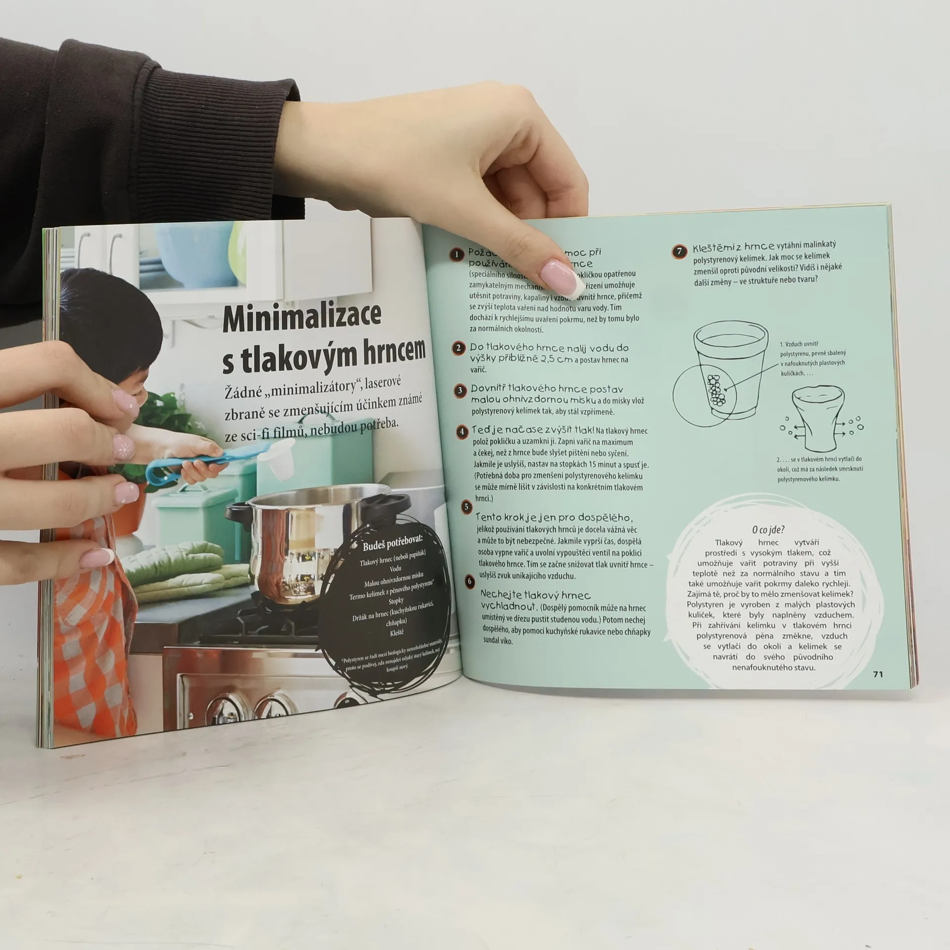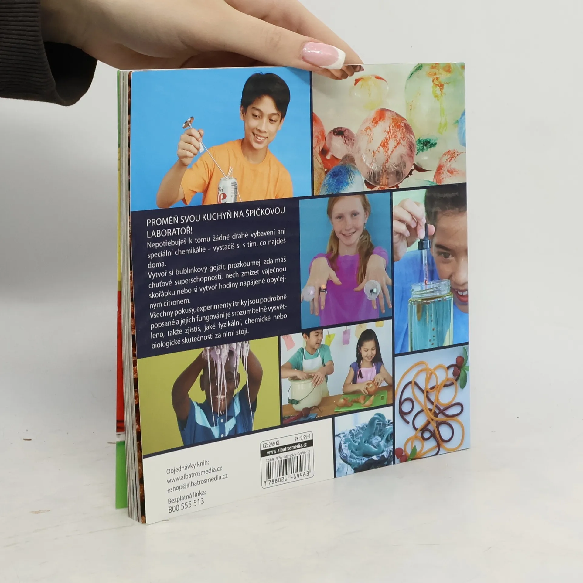 Proměň svou kuchyň na špičkovou laboratoř! Více než 30 zábavných pokusů Proměň svou kuchyň na špičkovou laboratoř! Nepotřebuješ k tomu žádné drahé vybavení ani speciální chemikálie – vystačíš si s tím, co najdeš doma. Vytvoř si bublinkový gejzír, prozkoumej, zda máš chuťové superschopnosti, nech zmizet vaječnou skořápku nebo si vytvoř hodiny napájené obyčejným citronem. Všechny pokusy, experimenty i triky jsou podrobně popsané a jejich fungování je srozumitelně vysvětleno, takže zjistíš, jaké fyzikální, chemické nebo biologické skutečnosti za nimi stojí.