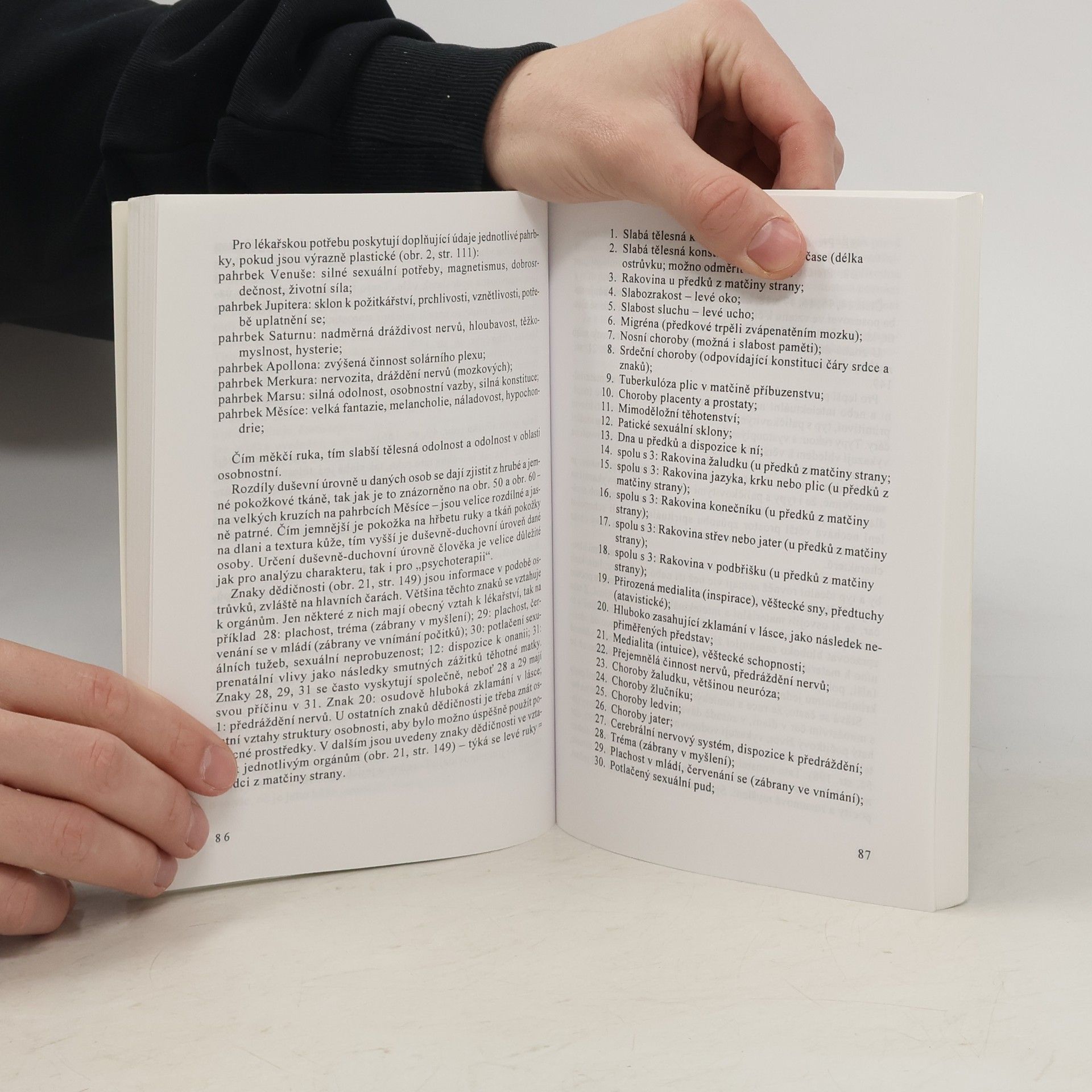Popis: Tato kniha umožňuje podle čar a znaků na ruce přesně určit a rozpoznat skryté nebo již projevené nemoci a neduhy a včas zjistit jaké problémy mohou nastat v budoucnu.