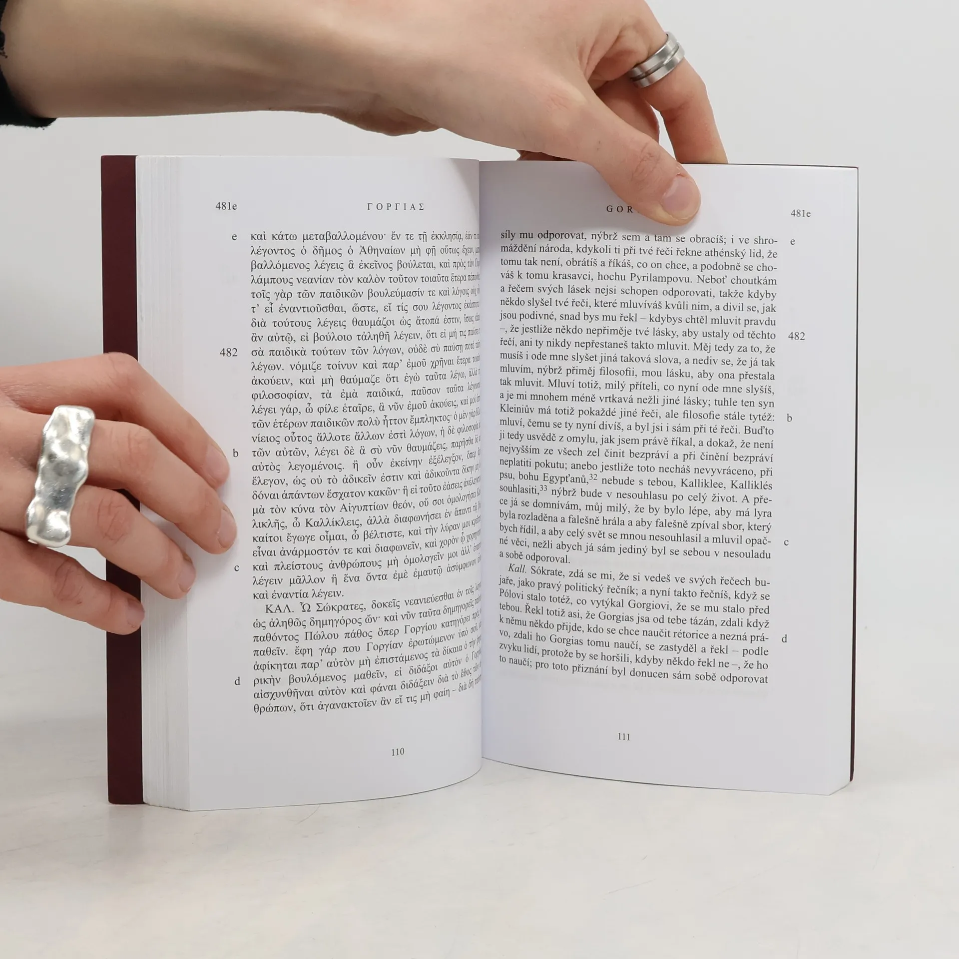 Filozofický dialog staví rétoriku do protikladu k etice. První řecko-české vydání Platónova dialogu Gorgias. Platónův řecký text je převzat z Burnetovy kritické edice (1903), český překlad, který vychází v šestém a opraveném vydání, pochází z pera Františka Novotného (1936). Součástí knihy je překladatelův úvod, vysvětlující poznámky a seznam literatury.