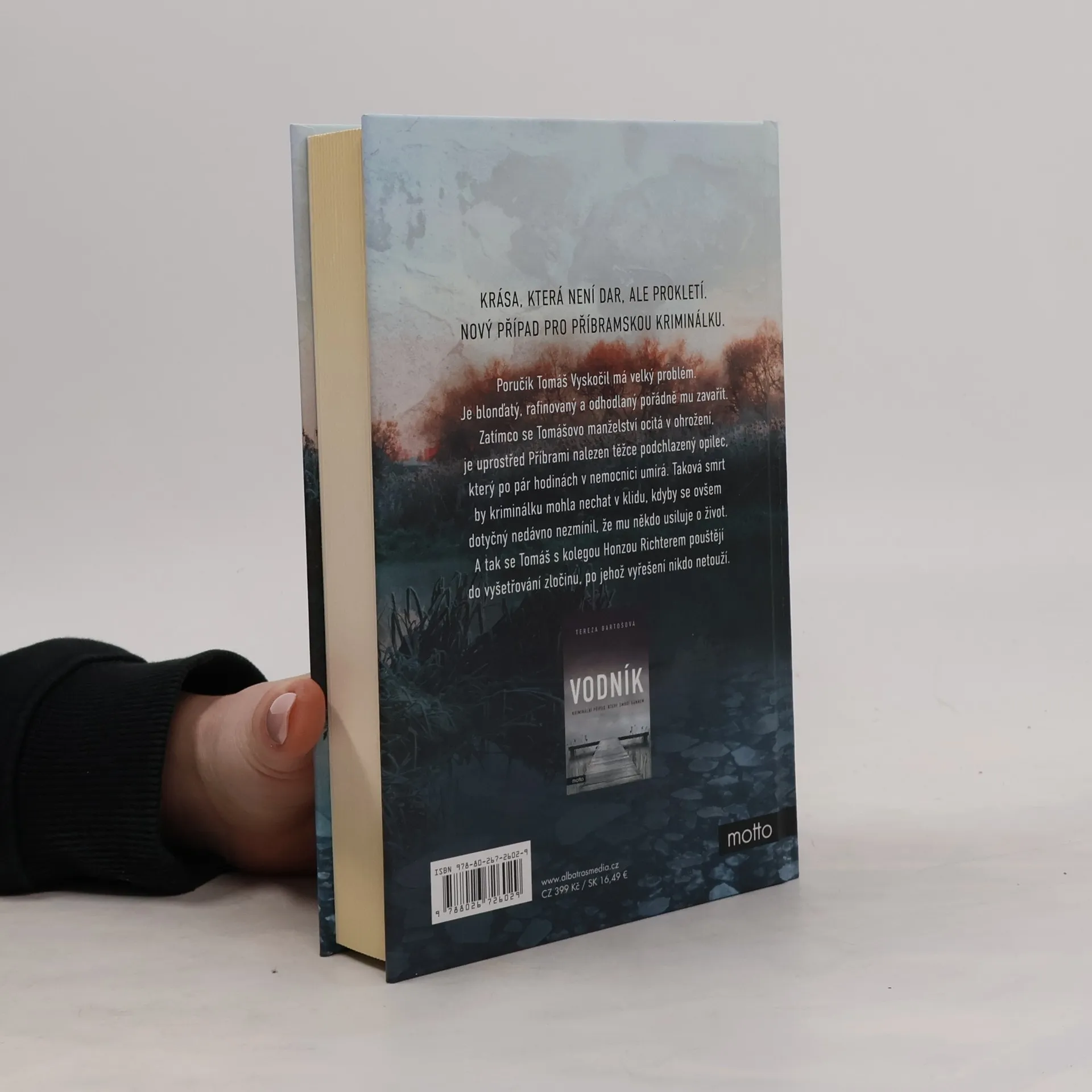 Starý zločin si žádá nové oběti. Od autorky hitu Vodník. Poručík Tomáš Vyskočil má velký problém. Je blonďatý, rafinovaný a odhodlaný pořádně mu zavařit. Zatímco se Tomášovo manželství ocitá v ohrožení, je uprostřed Příbrami nalezen těžce podchlazený opilec, který po pár hodinách v nemocnici umírá. Taková smrt by kriminálku mohla nechat v klidu, kdyby se ovšem dotyčný nedávno nezmínil, že mu někdo usiluje o život. A tak se Tomáš s kolegou Honzou Richterem pouštějí do vyšetřování zločinu, po jehož vyřešení nikdo netouží.