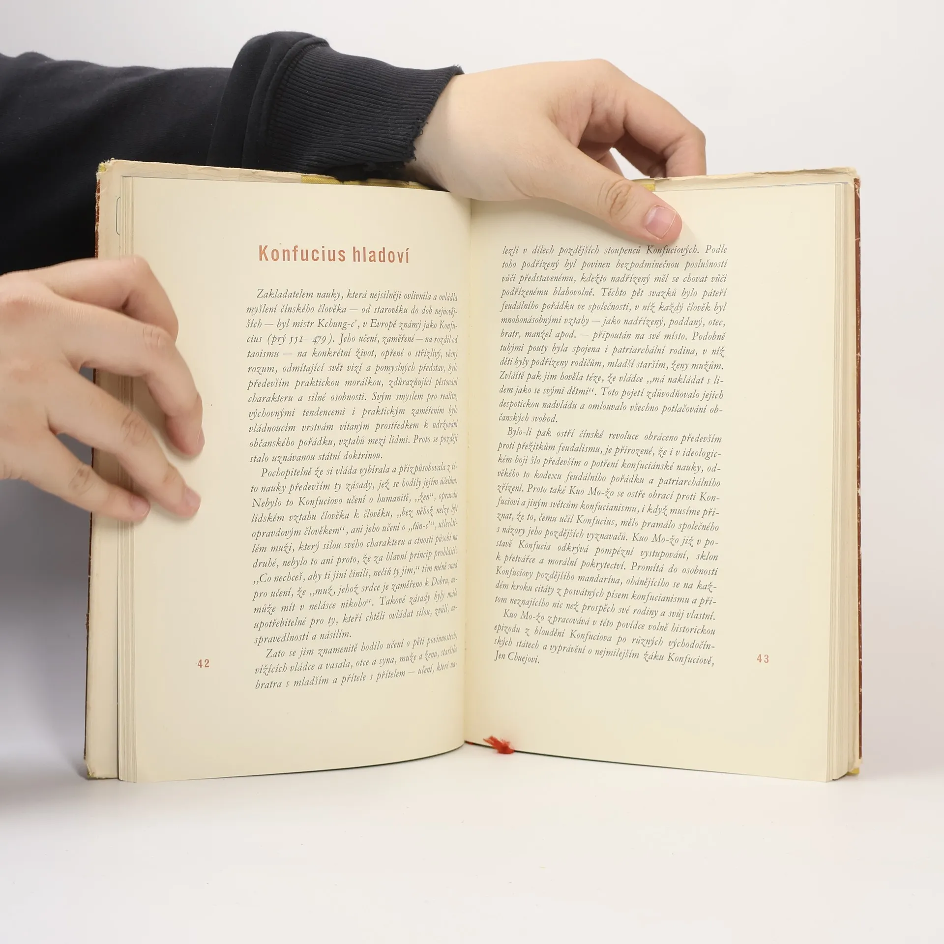 Výbor z rozsáhlého literárního díla jednoho z nejvýznamnějších lidí dnešní lidové Číny - vynikajícího vědce, spisovatele a vlastence, místopředsedy Světové rady míru - zahrnuje osm historicko-filosofických povídek. Jejich náměty jsou vymyšlené i skutečné příběhy a odehrávají sepřevážně ve starověku čínských dějin. Jejich autor jako marxistický historik a umělec je psal proto, aby ukázal, kolik nepravdy, špatného pochopení i mylných názorů i výkladů bylo tradováno v čínské historii po celá staletí. V dialozích osob často užívá citátů nebo rozvedených myšlenek, zejména konfuciánských světců a mudrců. Kritickým realistickým pohledem na jejich učení dokazuje, že úcta k nim byla pouhou pověrou, a že stará čínská filosofie a dogmatická morálka pouze zastírala egoismus a lačnost vládnoucí třídy. (Podle J. Průška.)