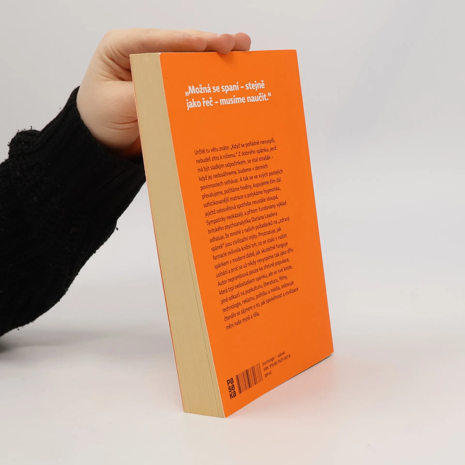 Určitě tu větu znáte: „Když se pořádně nevyspíš, nebudeš zítra k ničemu.“ Z dobrého spánku, jenž má být sladkým odpočinkem, se stal strašák – když jej nedosáhneme, budeme v denních povinnostech selhávat. A tak se ve svých postelích převalujeme, počítáme hodiny, kupujeme čím dál sofistikovanější matrace a polykáme hypnotika, jejichž celosvětová spotřeba neustále stoupá. Sympaticky neokázalý, a přitom fundovaný výklad britského psychoanalytika Dariana Leadera odhaluje, že mnohé z našich požadavků na „zdravý spánek“ jsou civilizační mýty. Prozrazuje, jak ovlivnila farmacie knižní trh, co se stalo s naším spánkem v moderní době, jak skutečně funguje usínání a proč se už nikdy nevyspíme tak jako dřív. Autor nepromlouvá pouze ke čtvrtině populace, která trpí insomnií, ale svým výkladem, plným odkazů na pop kulturu, literaturu, filmy, technologie, reklamu, politiku a média, oslovuje čtenáře se zájmem o to, jak společnost a civilizace mění naše mysli a těla.