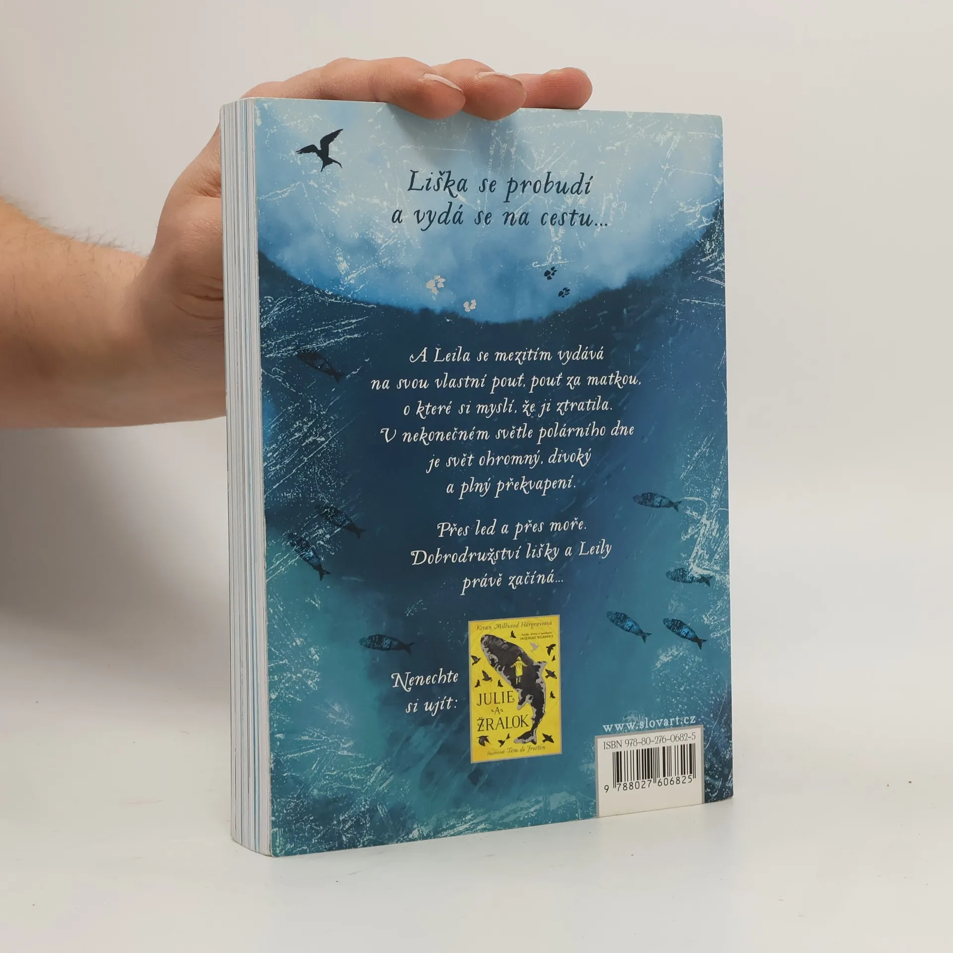 Byla k smrti unavená. Lehla si na zem a zabořila hebkou hlavu do měkkých pracek. Zapadající slunce jí olízlo čenich. Sníh ji přikryl jako tlustá deka. Liška se probudí a vydá se na cestu. Putuje přes led a sníh, přes hory a zamrzlé oceány, potkává lední medvědy a ptáky v záři nekonečného světla polárního dne. Bojuje o svoje místo ve světě, který je ohromný, divoký a plný překvapení. Leila mezitím vyráží na svou vlastní pouť - hledá si cestu k matce, která ji opustila, a k jejich společné minulosti, na kterou se tolik let snažila zapomenout. Dechberoucí plavba severním ledovým oceánem pomůže Leile najít matku, o které si myslela, že ji dávno ztratila, ale především i sebe samu. A k tomu jí dopomůže jedna odhodlaná malá liška. Inspirováno skutečným příběhem polární lišky, která za pouhých 76 dní překonala vzdálenost přes 3200 kilometrů a došla z Norska do Kanady. Toto dojemné, neodolatelné a překrásně ilustrované zpracování v podání autorů Julie a žraloka je vhodné pro čtenáře od 9 let.