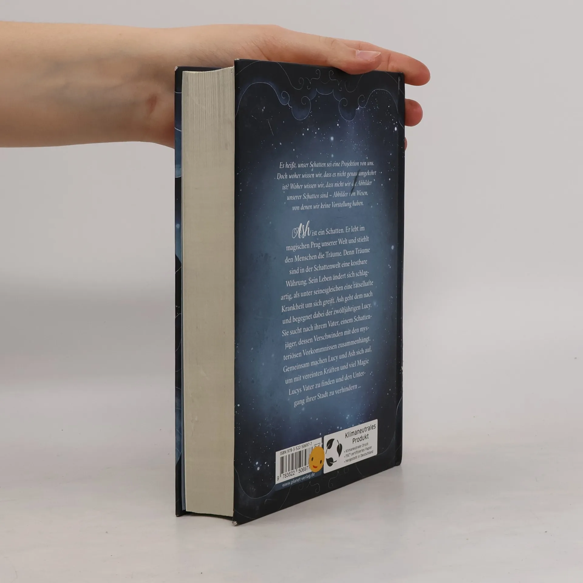 Wenn Schatten lebendig werden Ash Traumfeuer ist ein Schatten. Er lebt im magischen Prag unserer Welt und stiehlt den Menschen die Träume. Denn Träume sind in der Schattenwelt eine kostbare Währung. Sein Leben ändert sich schlagartig, als unter seinesgleichen eine rätselhafte Krankheit um sich greift. Ash geht dem nach und begegnet dabei der zwölfjährigen Lucy. Sie sucht nach ihrem Vater, einem Schattenjäger, dessen Verschwinden mit den mysteriösen Vorkommnissen zusammenhängt. Gemeinsam machen Lucy und Ash sich auf, um mit vereinten Kräften und viel Magie Lucys Vater zu finden und den Untergang ihrer Stadt zu verhindern ... Ein außergewöhnliches Buch mit Tiefgang und Humor Von Gesa Schwartz außerdem bei Planet! erschienen : Emily Bones - Die Stadt der Geister Ophelia Nachtgesang