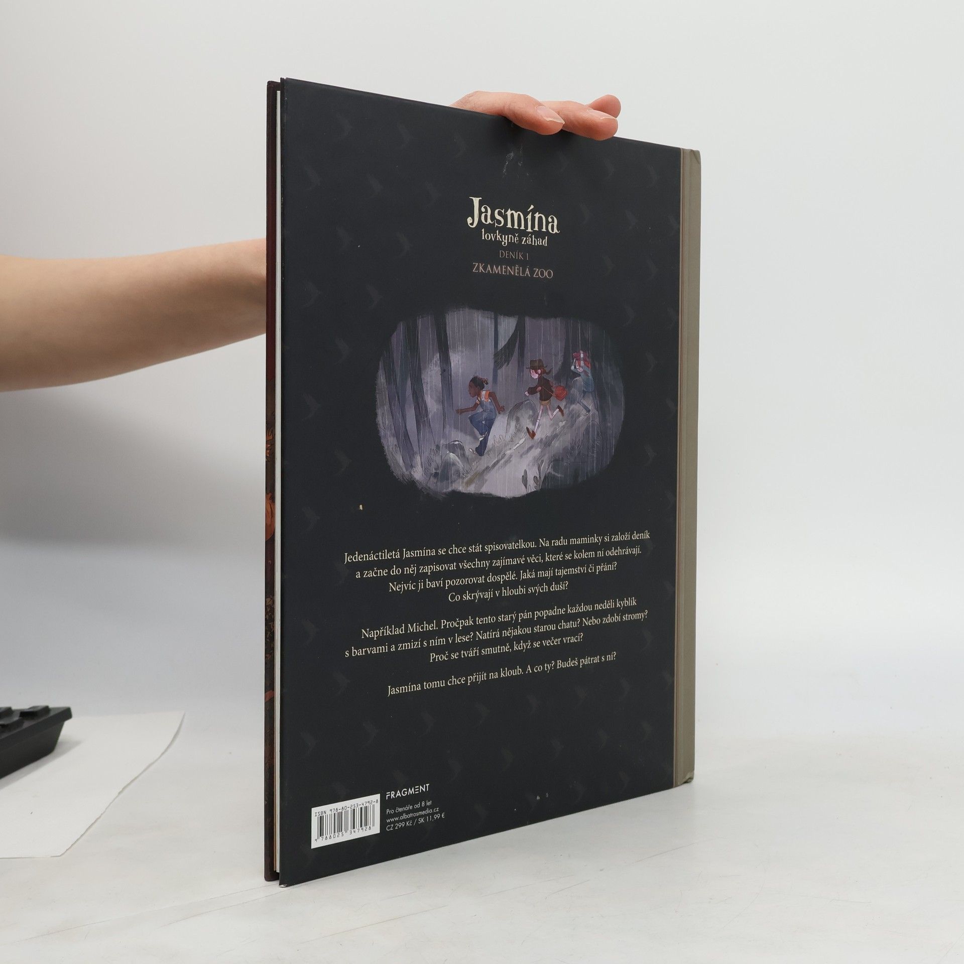Úžasný komiksový příběh pro všechny holky a kluky s dobrodružstvím v srdci! Jedenáctiletá Jasmína se chce stát spisovatelkou. Na radu maminky si založí deník a začne do něj zapisovat všechny zajímavé věci, které se kolem ní odehrají. Nejvíc ji baví pozorovat dospělé. Jaká mají tajemství či přání? Co skrývají v hloubi svých duší? Například Michael. Pročpak tento starý pán popadne každou neděli kyblík s barvami a zmizí s ním v lese? Natírá nějakou starou chatu? Nebo zdobí stromy? Proč se tváří smutně, když se večer vrací? Jasmína tomu chce přijít na kloub. A co ty? Budeš pátrat s ní?