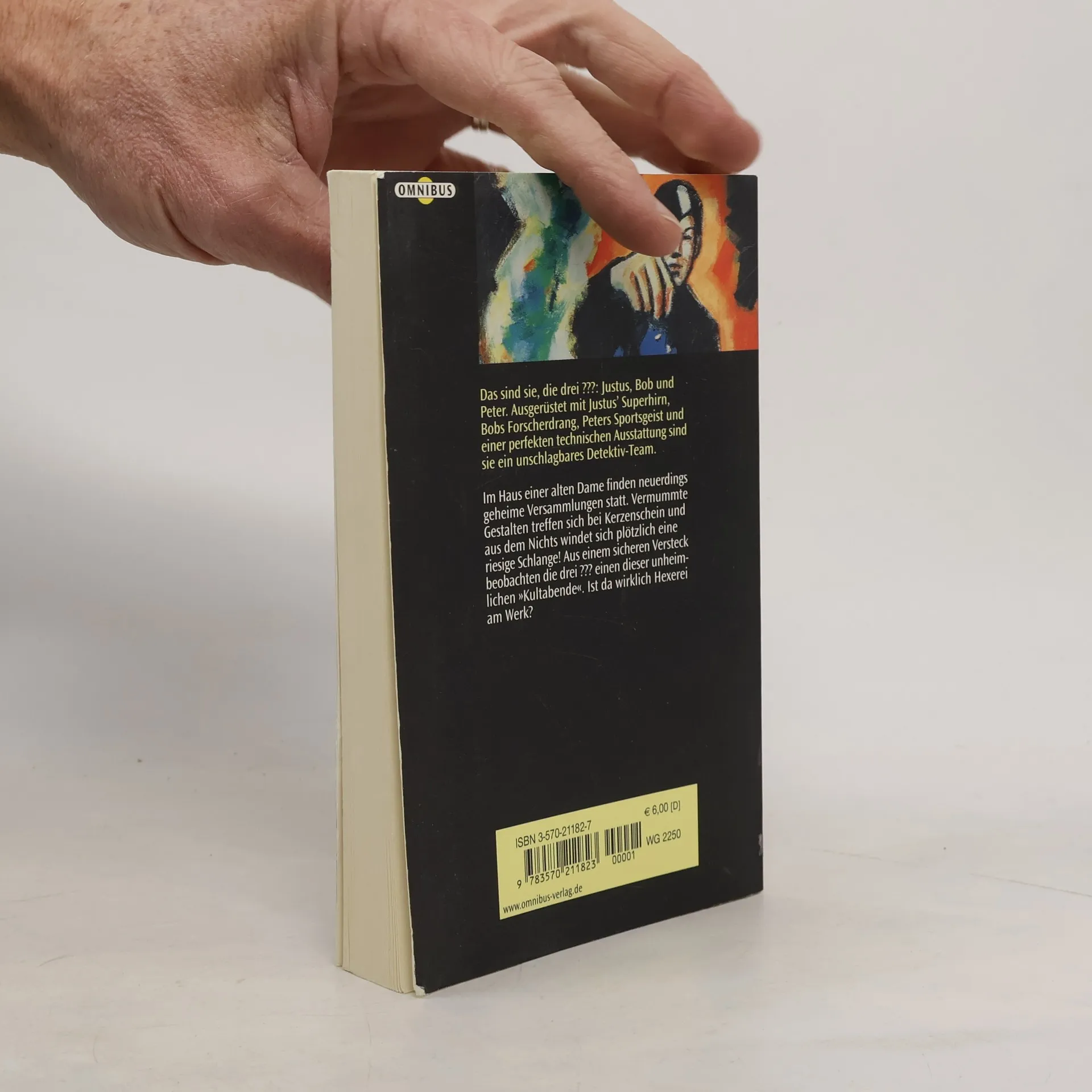 Im Haus einer alten Dame finden neuerdings geheime Versammlungen statt. Vermummte Gestalten treffen sich bei Kerzenschein und aus dem Nichts windet sich plötzlich eine riesige Schlange! Aus einem sicheren Versteck beobachten die drei ??? einen dieser unheimlichen "Kultabende". Ist da wirklich Hexerei am Werk?