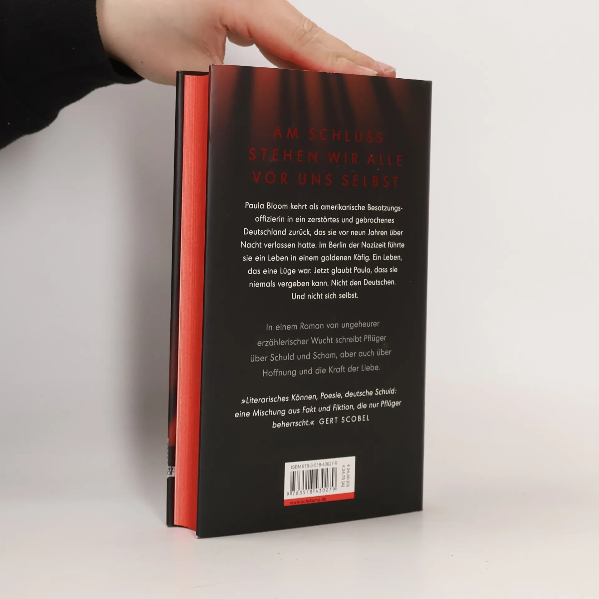 Paula Bloom kehrt nach ihrer Ausbildung in Camp Ritchie, Maryland als amerikanische Besatzungsoffizierin in ein zerstörtes und gebrochenes Deutschland zurück, das sie vor neun Jahren über Nacht verlassen hatte. Als Tochter eines amerikanischen Geschäftsmannes führte sie im Berlin der Nazizeit ein Leben im goldenen Käfig. Ein Leben, das eine Lüge war. Jetzt glaubt Paula, dass sie niemals vergeben kann. Nicht den Deutschen. Und nicht sich selbst. Während in Nürnberg über die Hauptkriegsverbrecher gerichtet wird, arbeitet man in einem Camp der US-Army nahe Frankfurt längst wieder mit Nazitätern zusammen. Im Maschinenraum des Kalten Krieges haben Pragmatiker das Sagen, an deren Zynismus Paula verzweifelt. Hier trifft sie auf Johann Kupfer, einen österreichischen Juden, der den Amerikanern seine Dienste anbietet. Er behauptet, der größte Spion des Zweiten Weltkriegs gewesen zu sein. Paula soll herausfinden, ob das die Wahrheit ist. Doch wer die Wahrheit sucht, muss sie auch ertragen. In einem Roman von ungeheurer erzählerischer Wucht schreibt Pflüger über Schuld und Scham, aber auch über Hoffnung und die Kraft der Liebe.