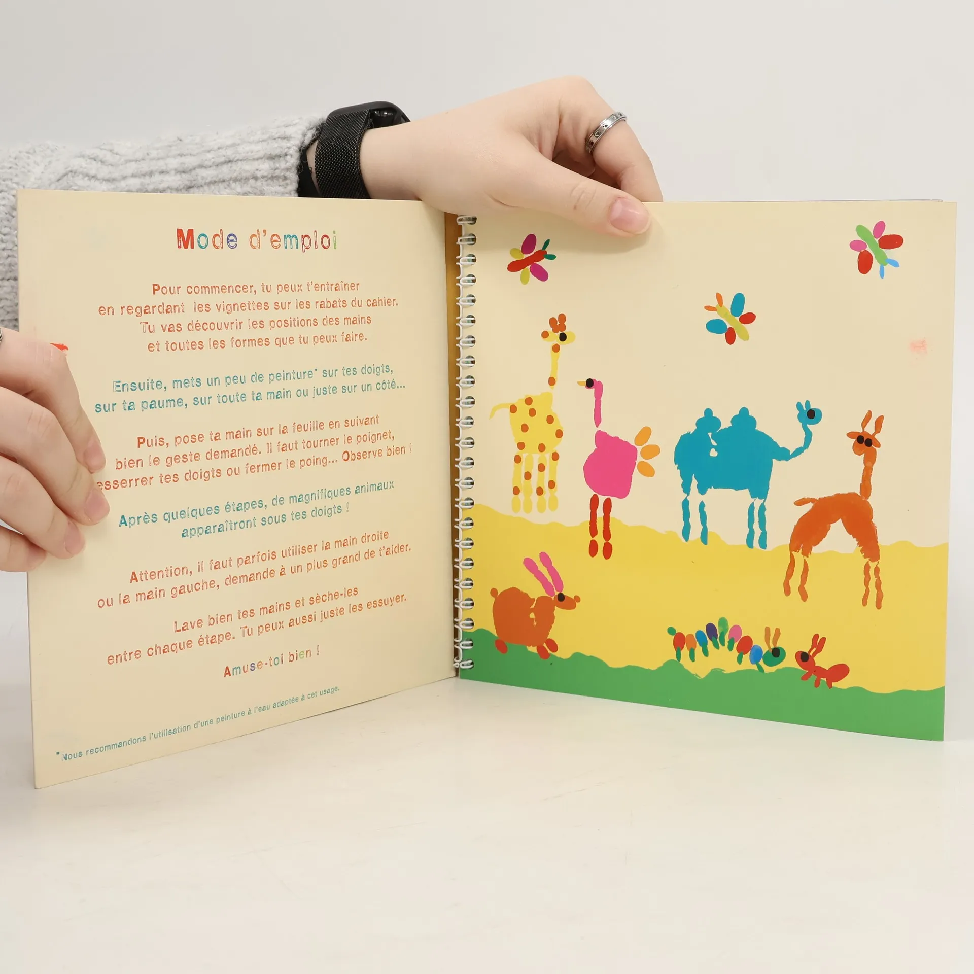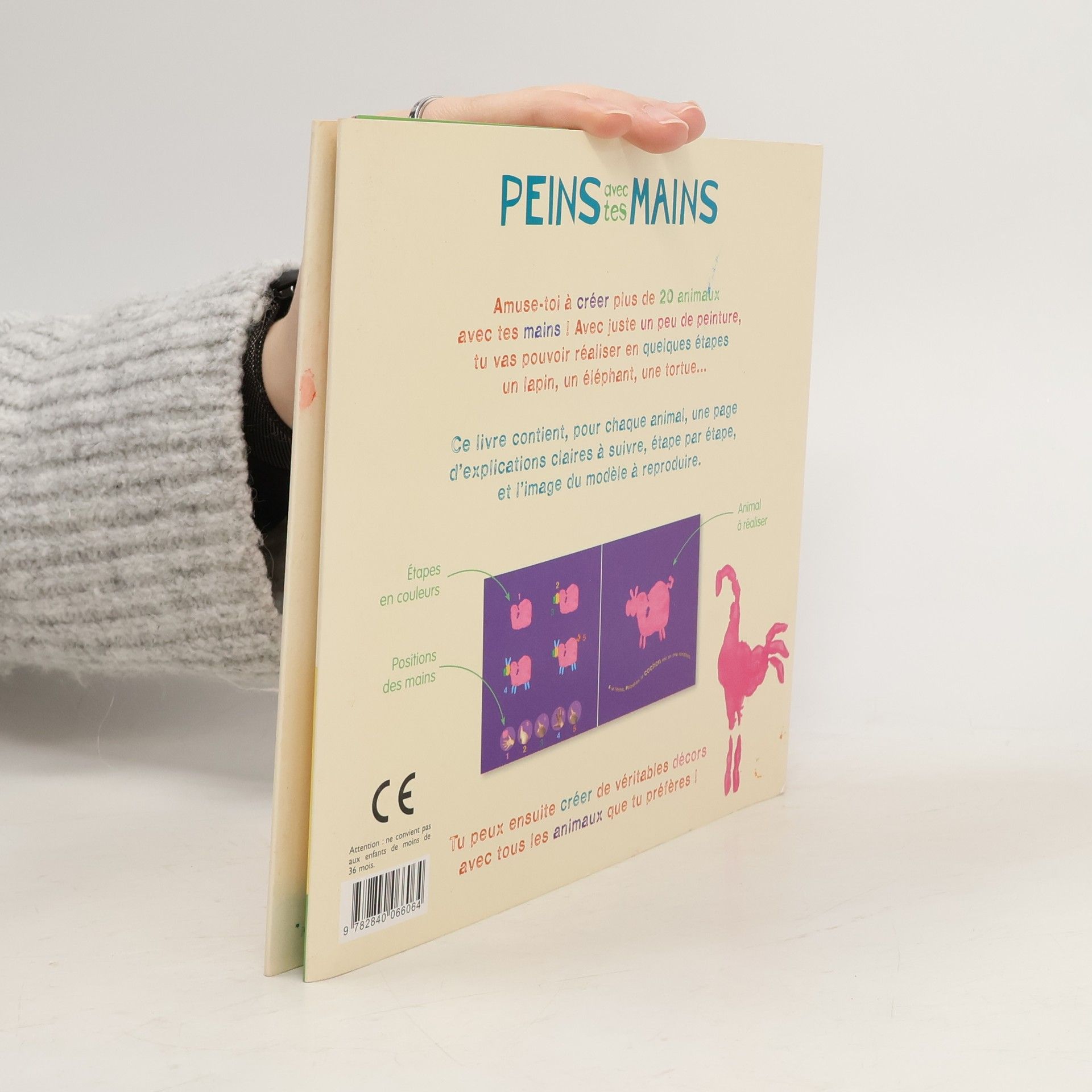 Amuse-toi à créer plus de 20 animaux à partir des empreintes de tes mains ! Avec seulement un peu de peinture, tu vas pouvoir réaliser en quelques étapes un lapin, un éléphant, un cygne...Ce livre contient, pour chaque animal, une page d'explications claires à suivre, étape par étape, et l'image du modèle à reproduire.