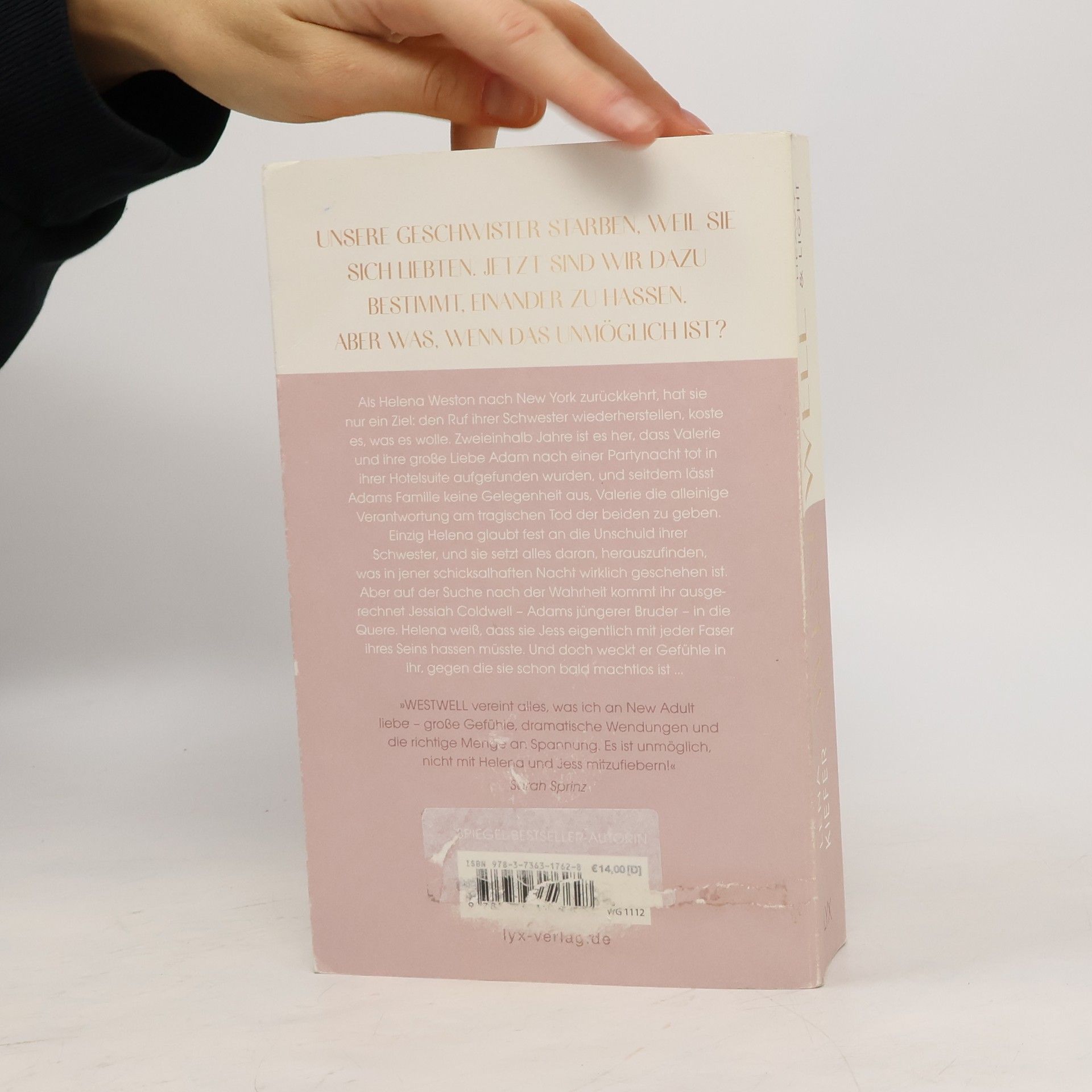 Unsere Geschwister starben, weil sie sich liebten. Jetzt sind wir dazu bestimmt, einander zu hassen. Doch was, wenn das unmöglich ist? Helena Weston kehrt nach New York zurück, um den Ruf ihrer Schwester Valerie wiederherzustellen. Zweieinhalb Jahre nach dem tragischen Tod von Valerie und ihrer großen Liebe Adam, der sie nach einer Partynacht in ihrer Hotelsuite tot aufgefunden wurde, wird Valerie von Adams Familie für den Vorfall verantwortlich gemacht. Nur Helena glaubt an die Unschuld ihrer Schwester und setzt alles daran, die Wahrheit über die schicksalhafte Nacht herauszufinden. Dabei stößt sie auf Jessiah Coldwell, Adams jüngeren Bruder. Obwohl Helena ihn hassen sollte, weckt Jess Gefühle in ihr, gegen die sie machtlos wird. „WESTWELL vereint alles, was ich an New Adult liebe - große Gefühle, dramatische Wendungen und die richtige Menge an Spannung. Es ist unmöglich, nicht mit Helena und Jess mitzufiebern!“ - SARAH SPRINZ Band 1 der WESTWELL-Reihe von SPIEGEL-Bestseller-Autorin Lena Kiefer.