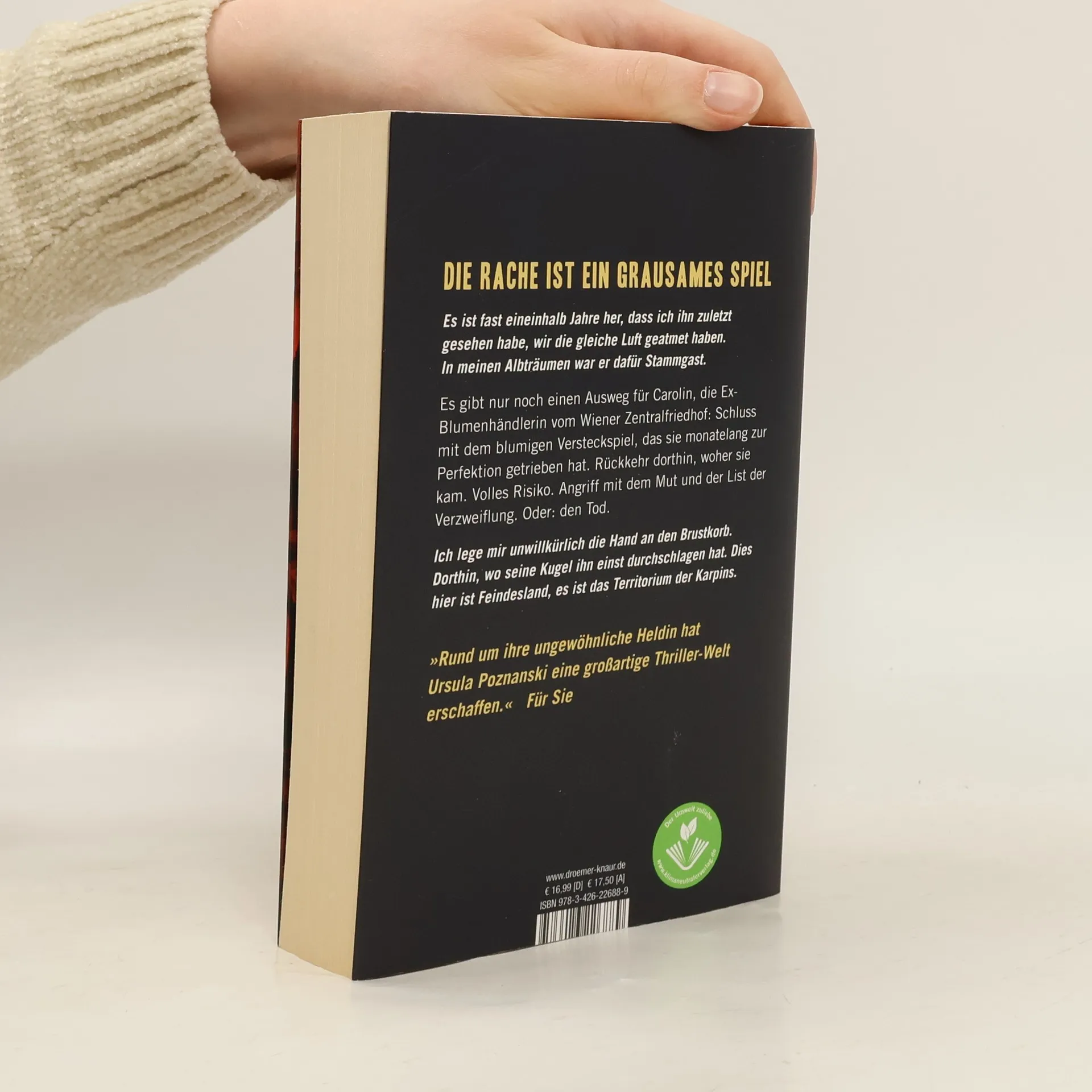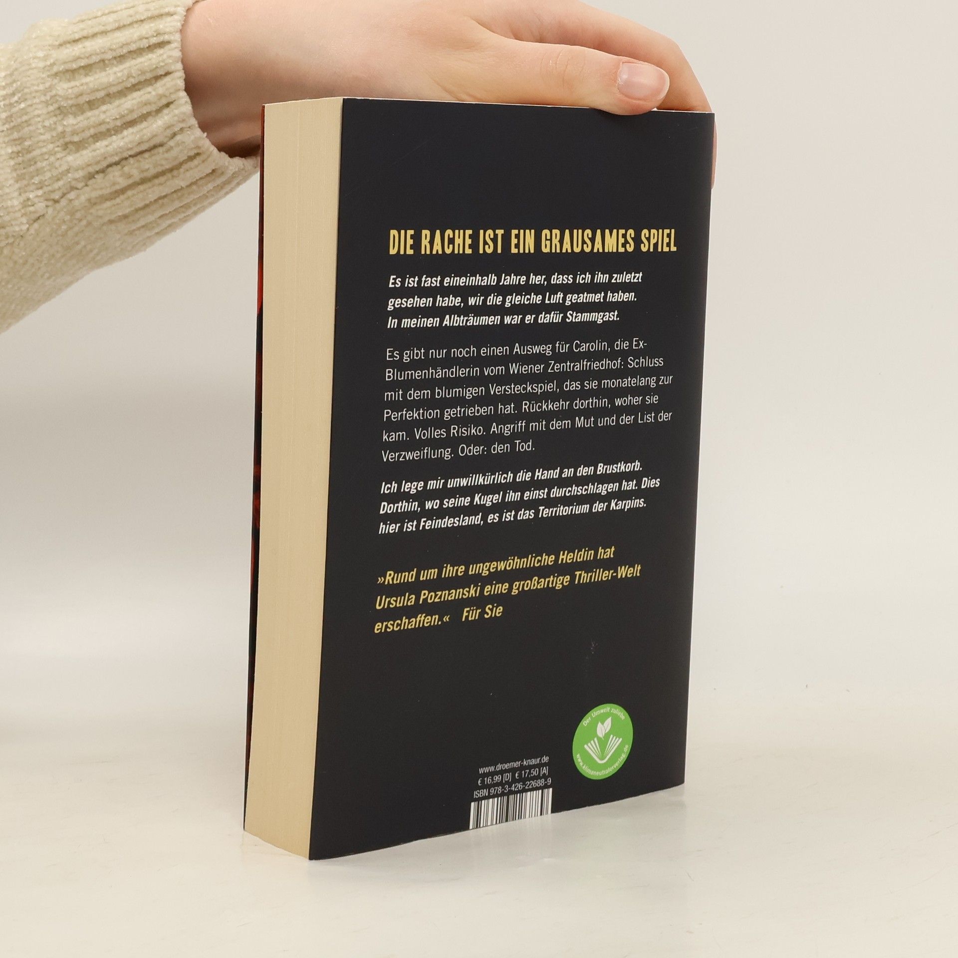 Blumig, blutig, feurig - Teil 3 der Vanitas-Serie von Bestseller-Autorin Ursula PoznanskiDer Abschluss der hochspannenden Thriller-Trilogie für Erwachsene: Die geheimnisvolle Blumenhändlerin zeigt ihr wahres Gesicht! Ihre Verfolger haben sie in Wien aufgespürt. Die österreichische Polizei sucht sie in Zusammenhang mit einem Mordfall. Völlig auf sich allein gestellt tritt Blumenhändlerin Carolin die Flucht nach vorne an: Sie fährt nach Frankfurt, in die Hochburg ihrer Feinde, in die Höhle des Löwen. Für sie die gefährlichste Stadt der Welt, aber auch die, in der man sie zuletzt vermuten würde. Und gleichzeitig der einzige Ort, an dem sie die Chance sieht, ihrem Alptraum ein Ende zu setzen. Ausgerüstet mit ihrem Wissen über den russischen Karpin-Clan, über Schwächen, Gewohnheiten und alte Feindschaften ihrer Gegner, beginnt Carolin, Fallen zu stellen und ein Netz aus Intrigen zu weben. Schon bald zieht sie eine blutige Spur durch Frankfurt - nur leider scheint es, als wäre ihre Rückkehr doch nicht unentdeckt geblieben … „Am Ende des Buches baut Ursula Poznanski einen Cliffhanger ein, sodass man sehnsüchtig Band drei herbeisehnt.“ Wiener Zeitung zu „Vanitas - Grau wie Asche“ Die weiteren Bände der Thriller-Serie:Vanitas - Schwarz wie ErdeVanitas - Grau wie Asche
