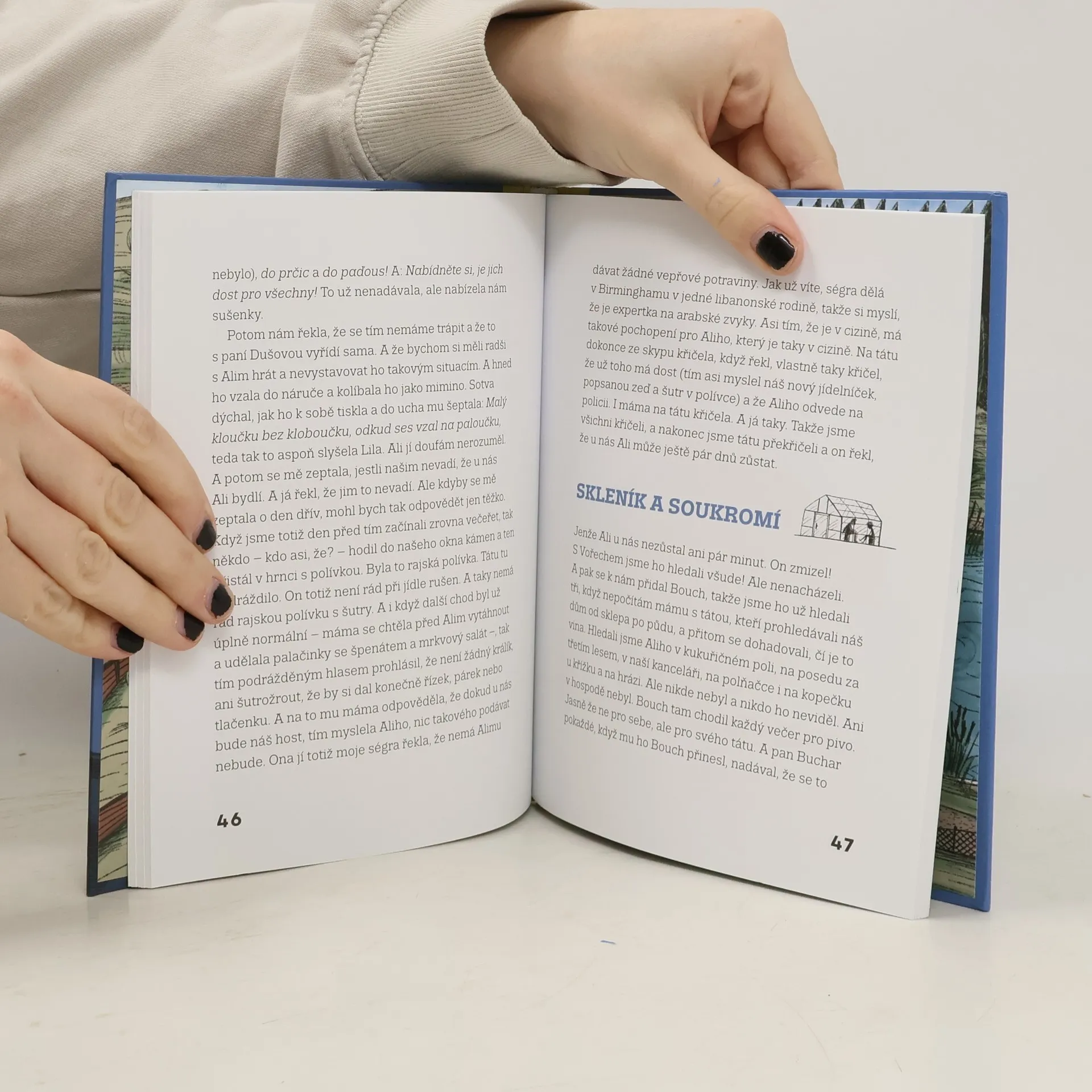 Nejdřív se ztratil panu Luňákovi papoušek. Potom se ztratilo Dušovým prase. To se stalo v pondělí. A pak to šlo ráz na ráz. Markétě ulítly včely a Thuingovým zmizely rybičky z akvária. Když se pak ve středu ztratila černá kočka Saze, tak Lila řekla, že to takhle dál nejde, že se toho musíme ujmout. A hned vzala lepenku a na ni napsala: DETEKTIVNÍ KANCELÁŘ. A v ní pracujeme MY. Totiž LILA, JÁ, BERTA a BOUCH. Při pátrání po Vořechovi (to je můj pes) jsme objevili za třetím lesem kouřící posed. A v něm ztracenýho kluka. Byl to jeden z našich nejsložitějších případů: Ali Kabbáni, 10 let. Vtipně a svižně vyprávěný příběh o nevážných věcech, ale i jedné vážné, ilustrovala Galina Miklínová.