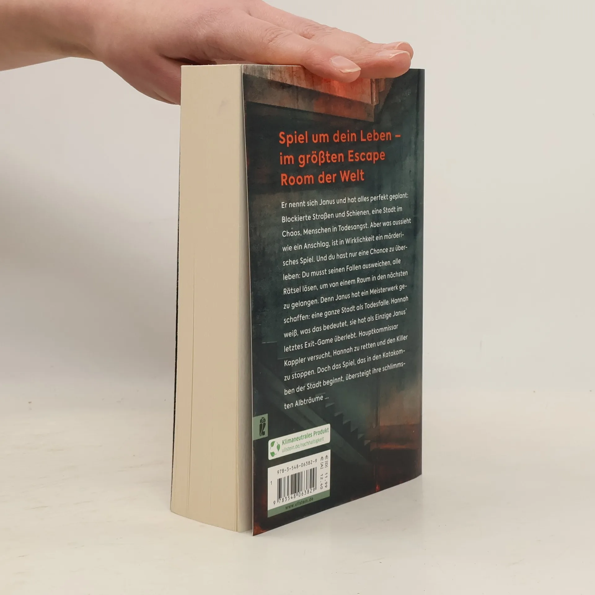 Spiel um dein Leben – im größten Escape-Room der Welt Er nennt sich Janus und hat alles perfekt geplant: Blockierte Straßen und Schienen, eine Stadt im Chaos, Menschen in Todesangst. Aber was aussieht wie ein Anschlag, ist in Wirklichkeit ein Spiel. Und du hast nur eine Chance zu überleben: Du musst besser sein als er, seinen Fallstricken ausweichen und alle Rätsel lösen, um von einem Raum in den nächsten gelangen. Denn Janus hat ein Meisterwerk geschaffen: eine ganze Stadt als Todesfalle. Hannah weiß, was das bedeutet, sie hat als Einzige Janus' letztes Exit-Game überlebt. Hauptkommissar Kappler versucht, Hannah zu retten und den Killer zu stoppen. Doch das Spiel, das in den Katakomben der Stadt beginnt, übersteigt ihre schlimmsten Alpträume ...