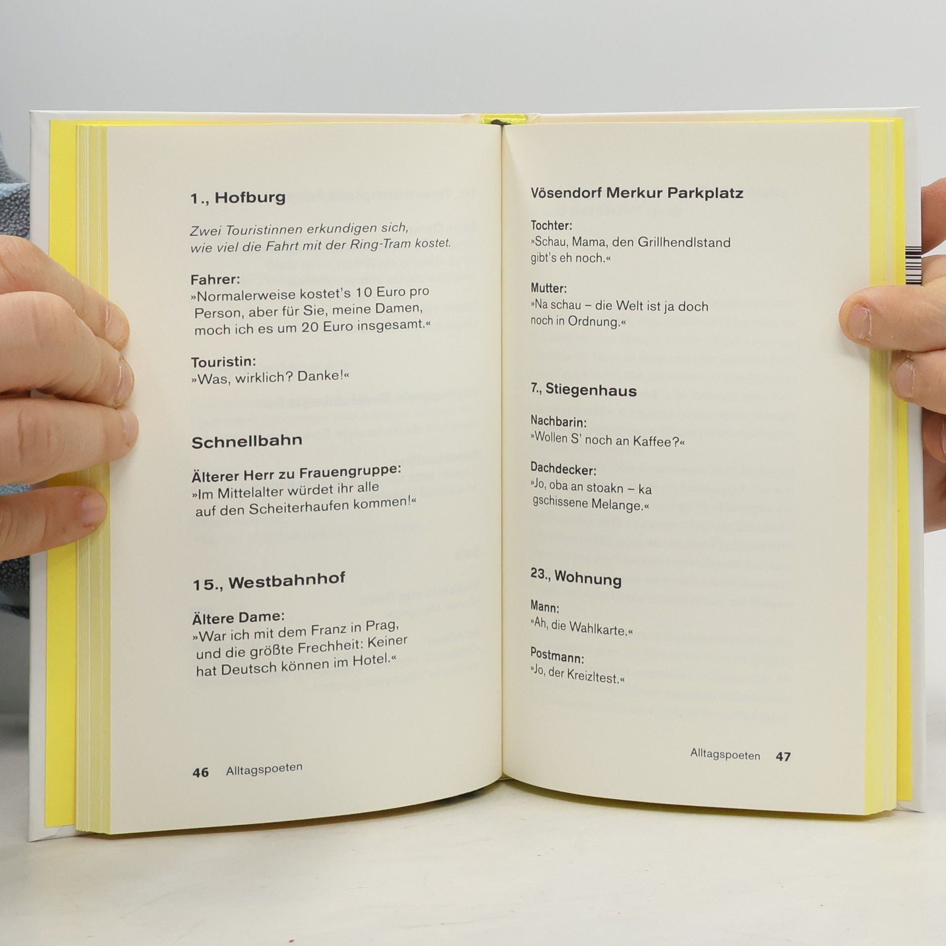 In Wien liegt die Poesie auf der Straße. Der Grant, der Zynismus, aber auch die feine Klinge der Selbstironie. Hier das Buch über und von den Menschen der Stadt. Ein literarisch lebendiges Buch der Sonderklasse. Mei Wien is ned deppad! Zwischen Schmäh und Tragödie ständig hin- und hergerissen: In Wien liegt die Poesie auf der Straße. Wer durch die Stadt spaziert, im Kaffeehaus sitzt oder mit der Straßenbahn fährt, taucht durch unzählige Gesprächsfetzen und Alltagssituationen hindurch. „Das sollte man doch mal aufschreiben“, dachte sich Andreas Rainer vor über drei Jahren, und startete die Plattform Wiener Alltagspoeten. Was als kurzes Experiment angelegt war, ist heute eine Instagram-Seite mit über 100.000 Followern. Nun erscheint eine Auswahl der denkwürdigsten Alltagspoeten-Momente in Buchform – inklusive bisher unveröffentlichter Gustostückerl. Wer Wien erlesen möchte, kann den Reiseführer wegpacken, denn das echte Wien ist das der Alltagspoeten.