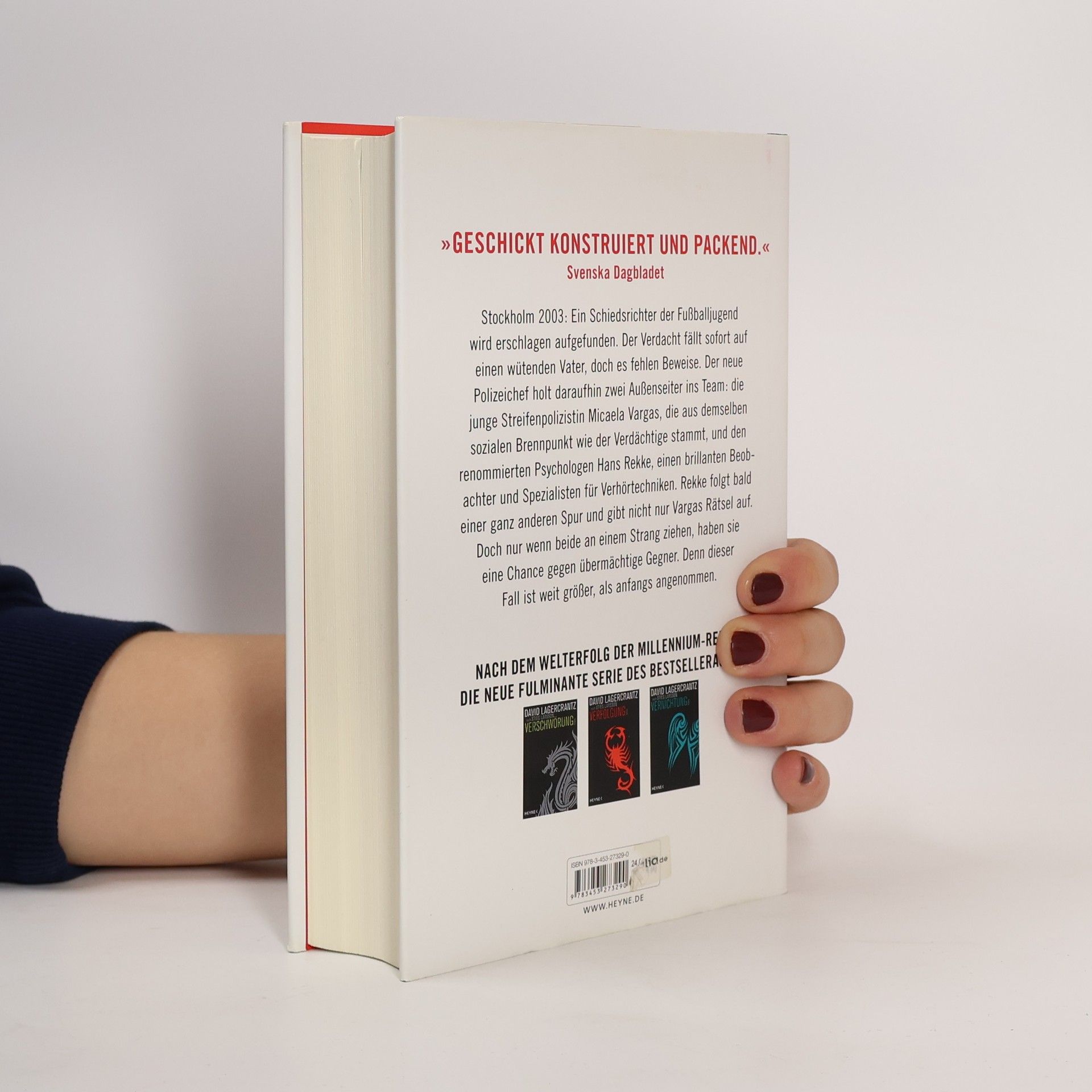 Nach dem Welterfolg der Millennium-Reihe: Die neue Thrillerserie des schwedischen Bestsellerautors Stockholm 2003: Ein Schiedsrichter der Fußballjugend wurde erschlagen. Der Verdacht fällt auf einen überengagierten Vater, doch es fehlen Beweise. Der neue Polizeichef holt daraufhin zwei Außenseiter ins Team: die junge Streifenpolizistin Micaela Vargas, die aus demselben Problemviertel wie der Verdächtige stammt, und den Psychologen Hans Rekke, ein brillanter Beobachter und Spezialist für Verhörtechniken. Nur wenn sich beide zusammentun, haben sie eine Chance gegen mächtige Gegner. Denn dieser Fall ist weit größer, als anfangs angenommen. »Ein nervenaufreibender Politthriller mit dem spannendsten Ermittler-Duo seit langem. Micaela, eine Kämpferin, und Hans, ein tragisches Genie - Figuren, die so komplex und mitreißend sind, dass man süchtig nach ihnen wird.« Romy Hausmann