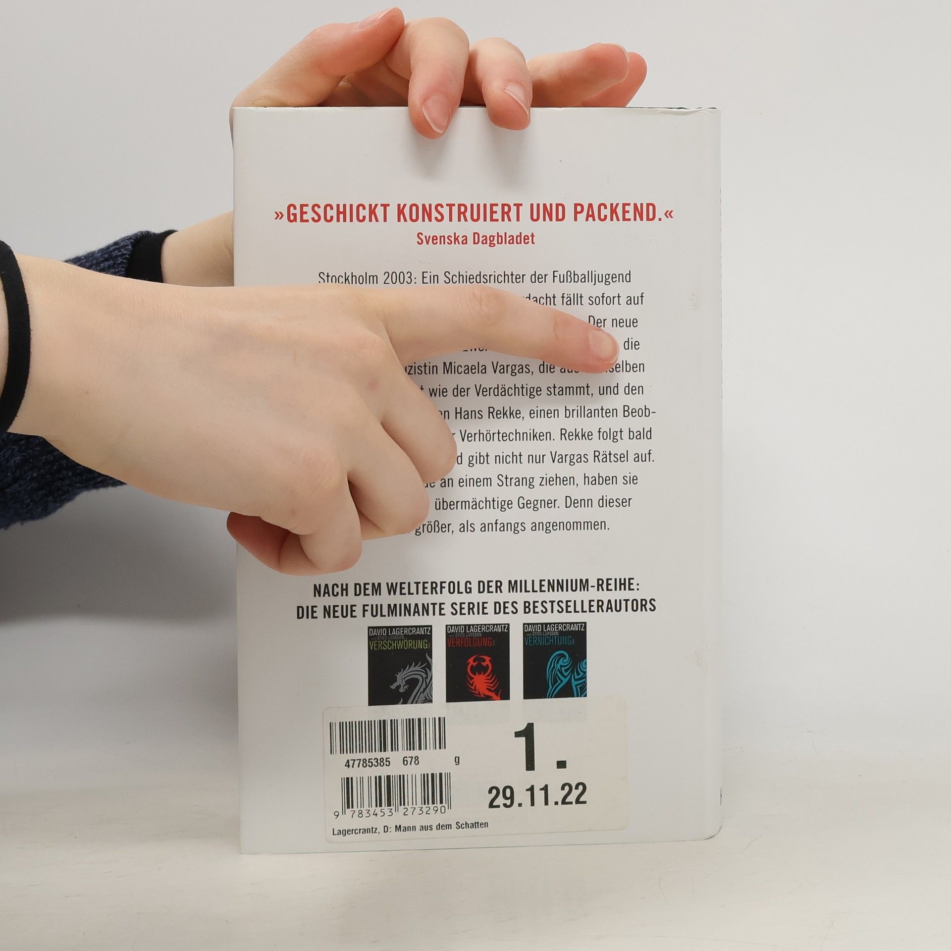Nach dem Welterfolg der Millennium-Reihe: Die neue Thrillerserie des schwedischen Bestsellerautors Stockholm 2003: Ein Schiedsrichter der Fußballjugend wurde erschlagen. Der Verdacht fällt auf einen überengagierten Vater, doch es fehlen Beweise. Der neue Polizeichef holt daraufhin zwei Außenseiter ins Team: die junge Streifenpolizistin Micaela Vargas, die aus demselben Problemviertel wie der Verdächtige stammt, und den Psychologen Hans Rekke, ein brillanter Beobachter und Spezialist für Verhörtechniken. Nur wenn sich beide zusammentun, haben sie eine Chance gegen mächtige Gegner. Denn dieser Fall ist weit größer, als anfangs angenommen. »Ein nervenaufreibender Politthriller mit dem spannendsten Ermittler-Duo seit langem. Micaela, eine Kämpferin, und Hans, ein tragisches Genie - Figuren, die so komplex und mitreißend sind, dass man süchtig nach ihnen wird.« Romy Hausmann