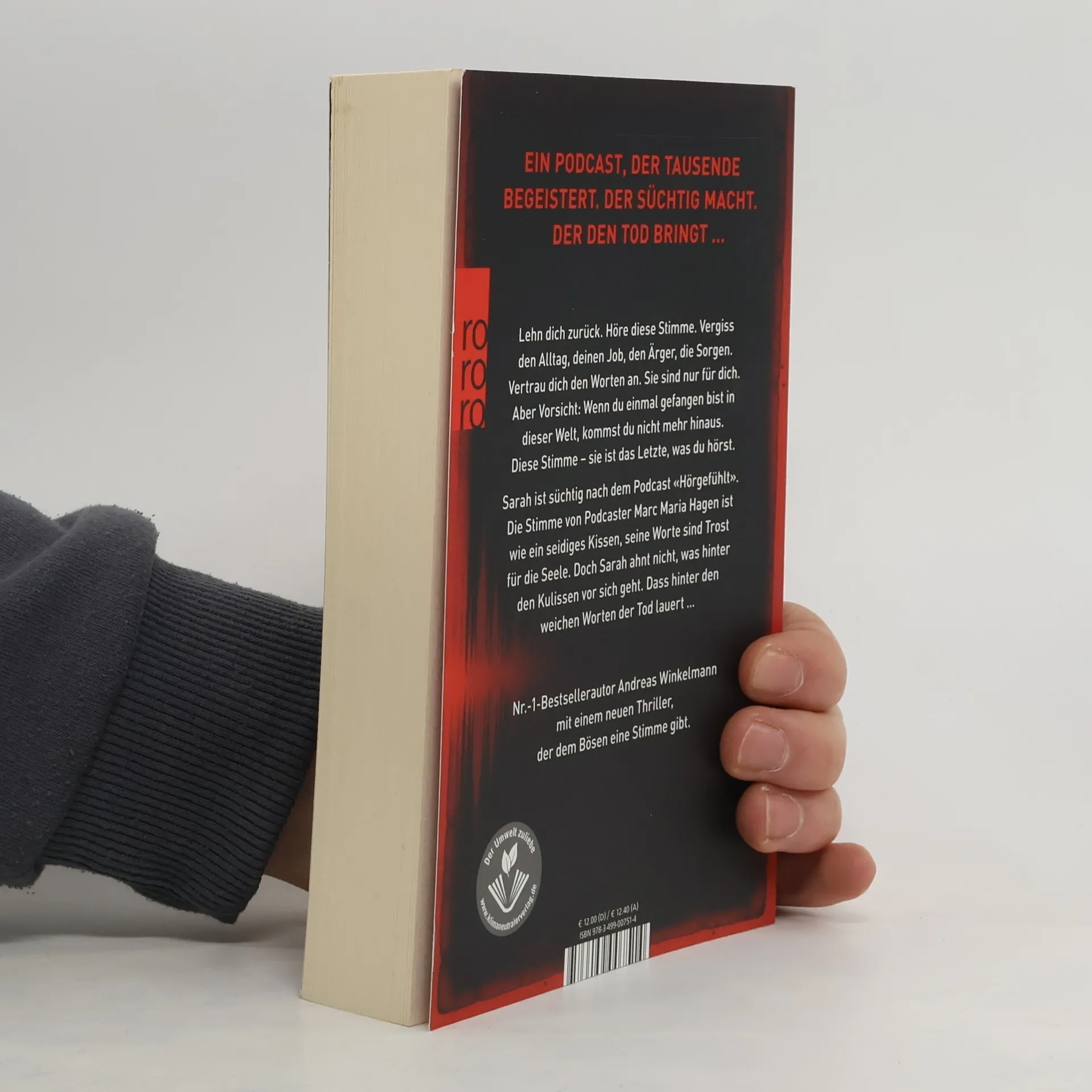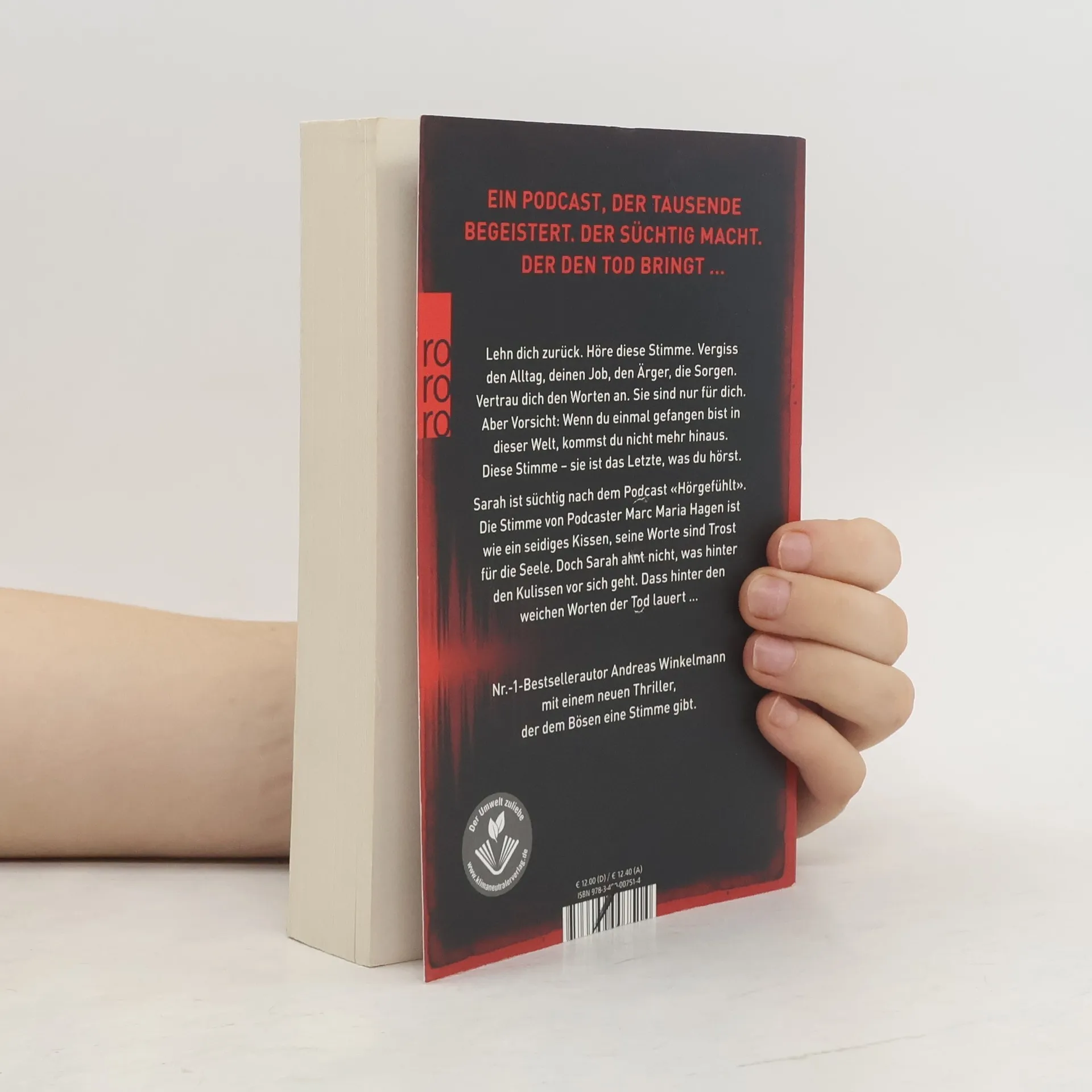 Ein Podcast, der Tausende begeistert. Der süchtig macht. Der den Tod bringt … Lehn dich zurück. Höre diese Stimme. Vergiss deinen Alltag, den Job, den Ärger, die Sorgen. Vertrau dich den Worten an. Sie sind nur für dich. Aber Vorsicht: Wenn du einmal gefangen bist in dieser Welt, kommst du nicht mehr hinaus. Diese Stimme – sie ist das Letzte, was du hörst. Sarah ist süchtig nach dem Podcast «Hörgefühlt». Die Stimme von Podcaster Marc Maria Hagen ist wie ein seidiges Kissen, seine Worte sind Trost für die Seele. Doch Sarah ahnt nicht, was hinter den Kulissen vor sich geht. Dass hinter den weichen Worten der Tod lauert. Nr.-1-Bestsellerautor Andreas Winkelmann mit einem neuen Thriller, der dem Bösen eine Stimme gibt.