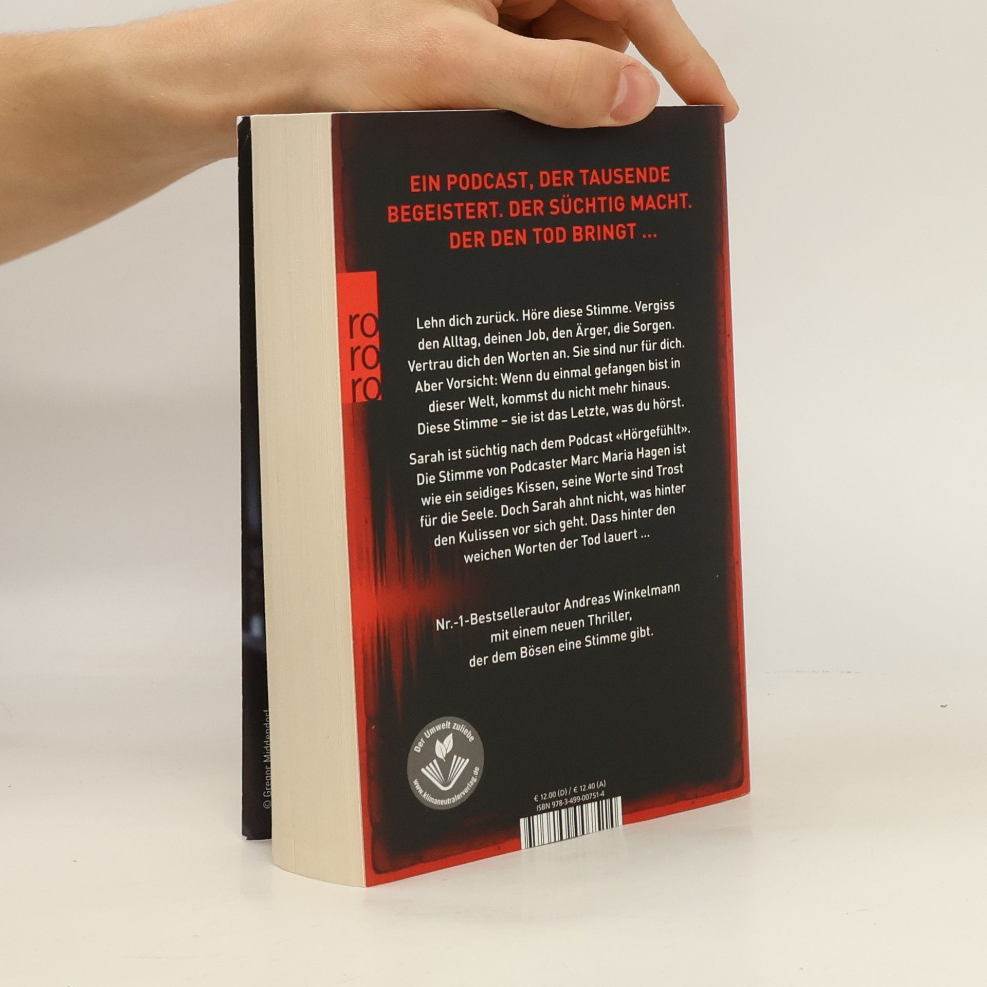 Ein Podcast, der Tausende begeistert. Der süchtig macht. Der den Tod bringt … Lehn dich zurück. Höre diese Stimme. Vergiss deinen Alltag, den Job, den Ärger, die Sorgen. Vertrau dich den Worten an. Sie sind nur für dich. Aber Vorsicht: Wenn du einmal gefangen bist in dieser Welt, kommst du nicht mehr hinaus. Diese Stimme – sie ist das Letzte, was du hörst. Sarah ist süchtig nach dem Podcast «Hörgefühlt». Die Stimme von Podcaster Marc Maria Hagen ist wie ein seidiges Kissen, seine Worte sind Trost für die Seele. Doch Sarah ahnt nicht, was hinter den Kulissen vor sich geht. Dass hinter den weichen Worten der Tod lauert. Nr.-1-Bestsellerautor Andreas Winkelmann mit einem neuen Thriller, der dem Bösen eine Stimme gibt.