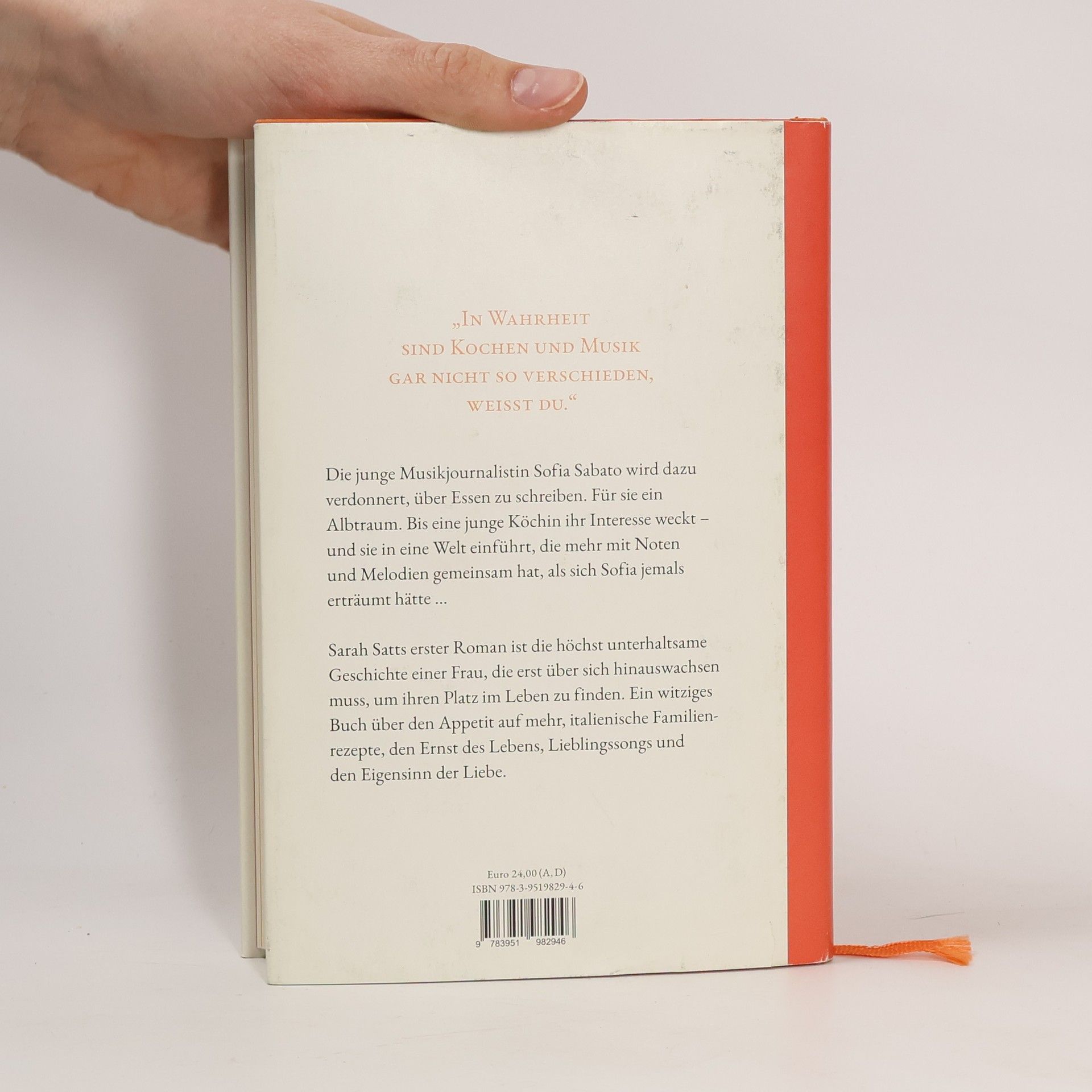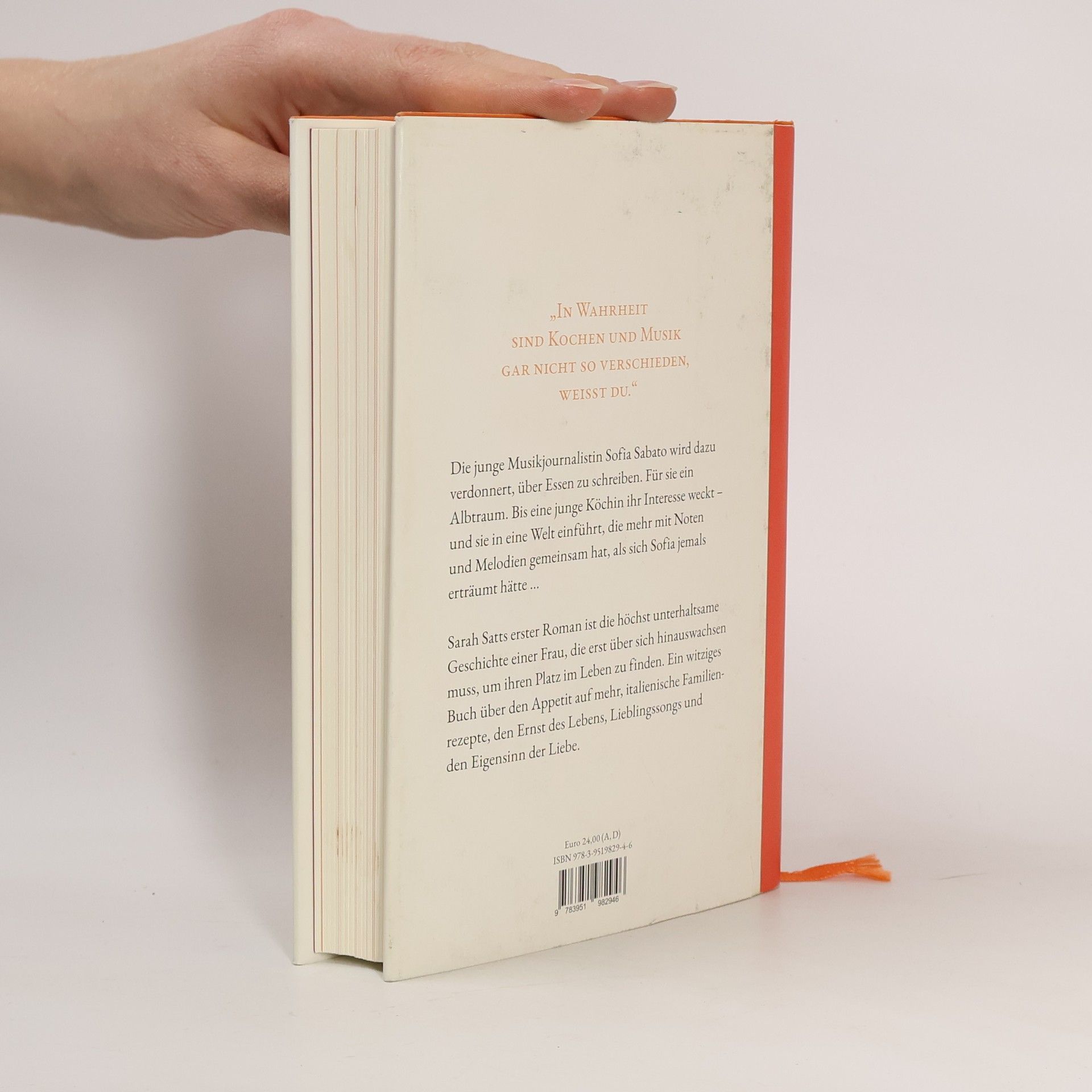 Die junge Musikjournalistin Sofia Sabato wird dazu verdonnert, über Essen zu schreiben. Für sie ein Albtraum. Bis eine junge Köchin ihr Interesse weckt – und sie in eine Welt einführt, die mehr mit Noten und Melodien gemeinsam hat, als sich Sofia jemals erträumt hätte … Sarah Satts erster Roman ist die höchst unterhaltsame Geschichte einer Frau, die erst über sich hinauswachsen muss, um ihren Platz im Leben zu finden. Ein witziges Buch über den Appetit auf mehr, italienische Familienrezepte, den Ernst des Lebens, Lieblingssongs und den Eigensinn der Liebe.