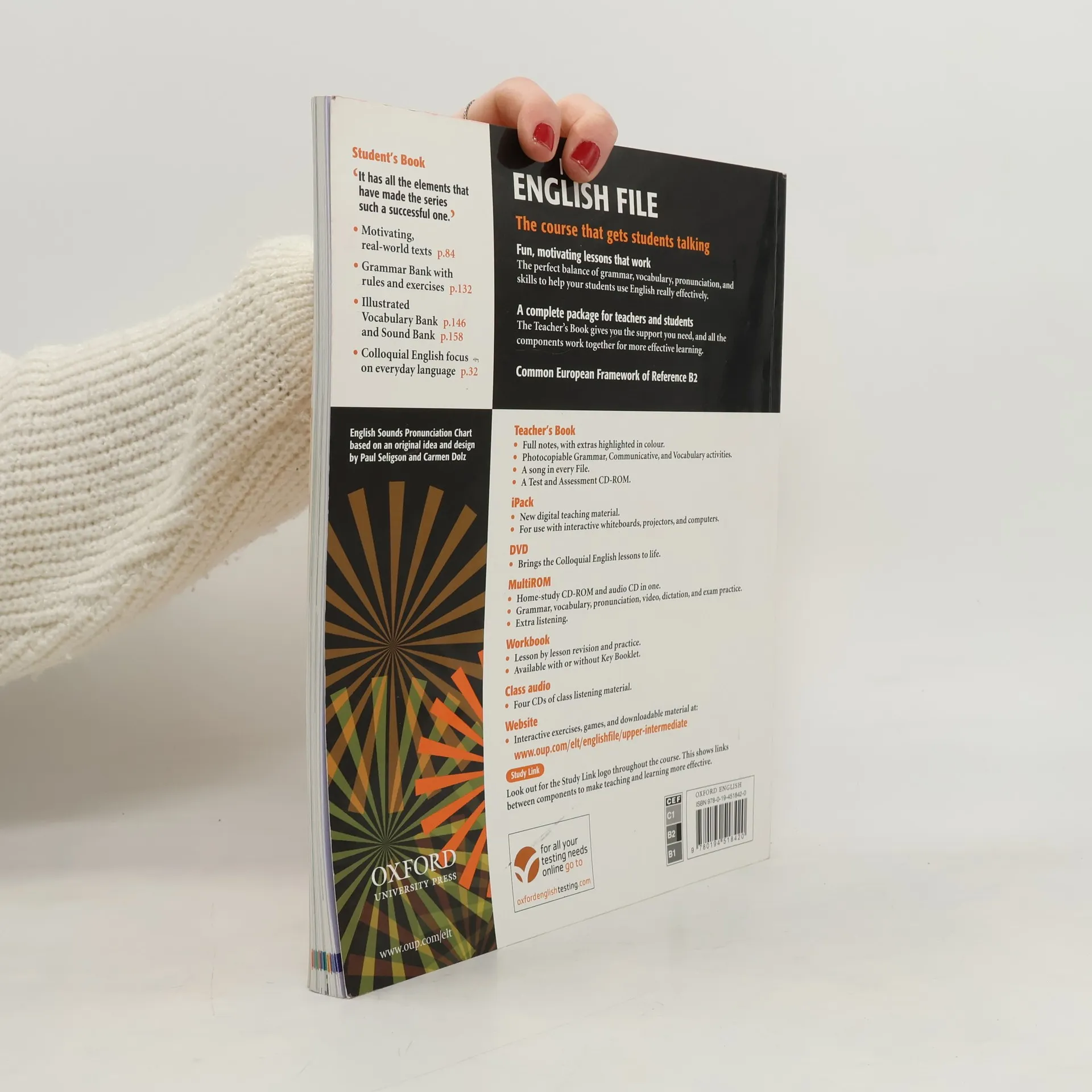 'English File' zeichnet sich durch flexible Einsatzmöglichkeiten aus; der Kurs passt sich problemlos den unterschiedlichen Kenntnissen und Bedürfnissen der Lernenden an. Um die Arbeit zu erleichtern, wird das Student's Bookin einer Sammelmappe - File system - angeboten. Das Kernprogramm vermittelt Grundkenntnisse zu Grammatik, Aussprache und Wortschatz sowie 'Englisch für die Reise'. Jeder Band kann durch das Zusatzprogramm um bis zu 60 Stunden erweitert werden. Im Anhang gibt es eineWordbank, ein 'picture dictionary' zum Üben und Testen der Vokabeln. Die iPacks können direkt im Unterricht einsetzt werden. Diese Software umfasst Stundenziele, das class audio material, alle Videosequenzen, alle video und listening scripts, Lösungen sowie Anregungen und Links für das Üben zu Hause. 7 units Colloquial English video lessons Consolidation and review pages after each unit Communication section and Listening scripts Grammar Bank, Vocabulary Bank, Phrasal Verbs in Context, Sound Bank and Wordlist