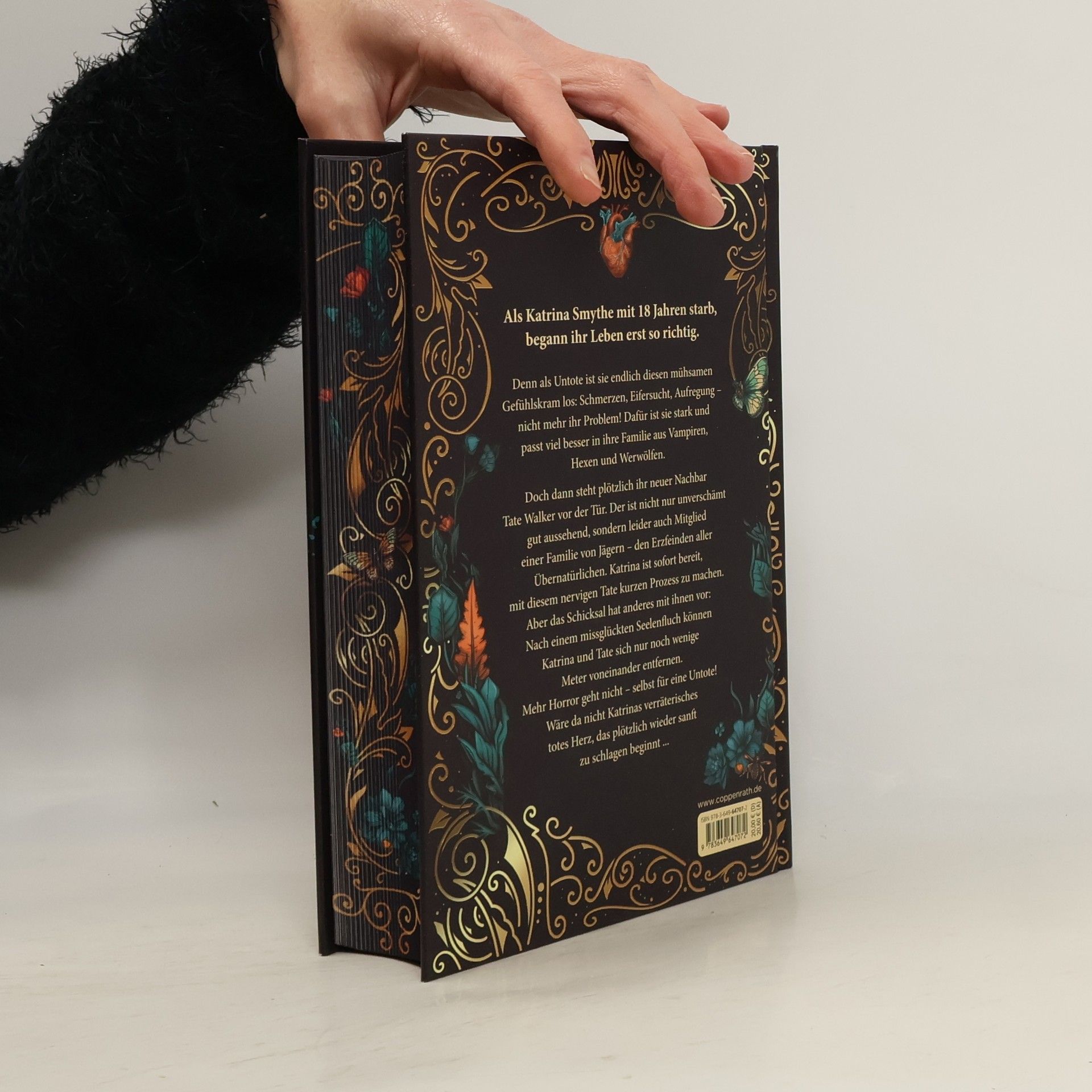 Hochwertige Ausgabe: Farbschnitt in der 1. Auflage, Goldfolie auf dem Cover und illustriertes Vor- und Nachsatzpapier Fühlst du meinen Herzschlag? Spürst du das Kribbeln auf der Haut? Das darf nicht echt sein! Katrina Smythe ist 18 Jahre alt, Highschool-Schülerin und seit einem Jahr untot. Ein Glücksfall, ist sie so doch endlich diesen mühsamen Gefühlskram los: Schmerzen, Eifersucht, Aufregung – nicht mehr ihr Problem! Dafür ist sie stark und passt viel besser in ihre außergewöhnliche Familie aus Vampiren, Hexen und Werwölfen. Doch alles ändert sich, als der neue Nachbarsjunge Tate Walker bei ihnen klingelt. Der ist nicht nur unverschämt gut aussehend, sondern leider auch Mitglied einer Familie von Jägern – den Erzfeinden aller Übernatürlichen. Katrina ist sofort bereit, mit diesem nervigen Tate kurzen Prozess zu machen. Aber dann geschieht das Unglaubliche: Die Walkers greifen nicht an, sondern bitten die Smythes um Hilfe. Und Katrina und Tate kommen sich näher als beiden lieb ist. Denn nach einem missglückten Seelenfluch können sie sich nur noch wenige Meter voneinander entfernen. Mehr Horror geht nicht – selbst für eine Untote! Wäre da nicht Katrinas verräterisches totes Herz, das plötzlich wieder sanft zu schlagen beginnt ... Band 1 des mitreißenden Enemies-to-lovers-Zweiteilers: verführerisch, witzig, herzergreifend Enemies to lovers, Haters to lovers, Forced Proximity, Paranormal Romance, Forbidden Love, Slow Burn