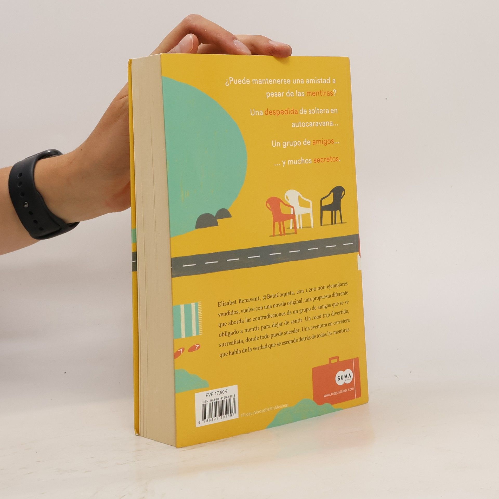 ¿Puede mantenerse una amistad a pesar de las mentiras? Una despedida de soltera en autocaravana. Un grupo de amigos...y muchos secretos. Elísabet Benavent, @Betacoqueta, con 1.000.000 de ejemplares vendidos vuelve con una novela original, una propuesta diferente que aborda las contradicciones de un grupo de amigos que se ve obligado a mentir para dejar de sentir. Un road trip divertido, surrealista, donde todo puede suceder. Una aventura en carretera que habla de la verdad que se esconde detrás de todas las mentiras. ENGLISH DESCRIPTION Can a friendship survive in spite of lies? A bachelorette party road trip. A group of friends… … and many secrets. Elisabet Benavent, @Betacoqueta, with over 1,000,000 copies sold, now returns with this original novel that addresses the contradictions of a group of friends who are forced to lie in order to run away from their feelings. A funny and surreal road trip, where everything can happen. An adventure that speaks of the truths that lie behind all the lies.