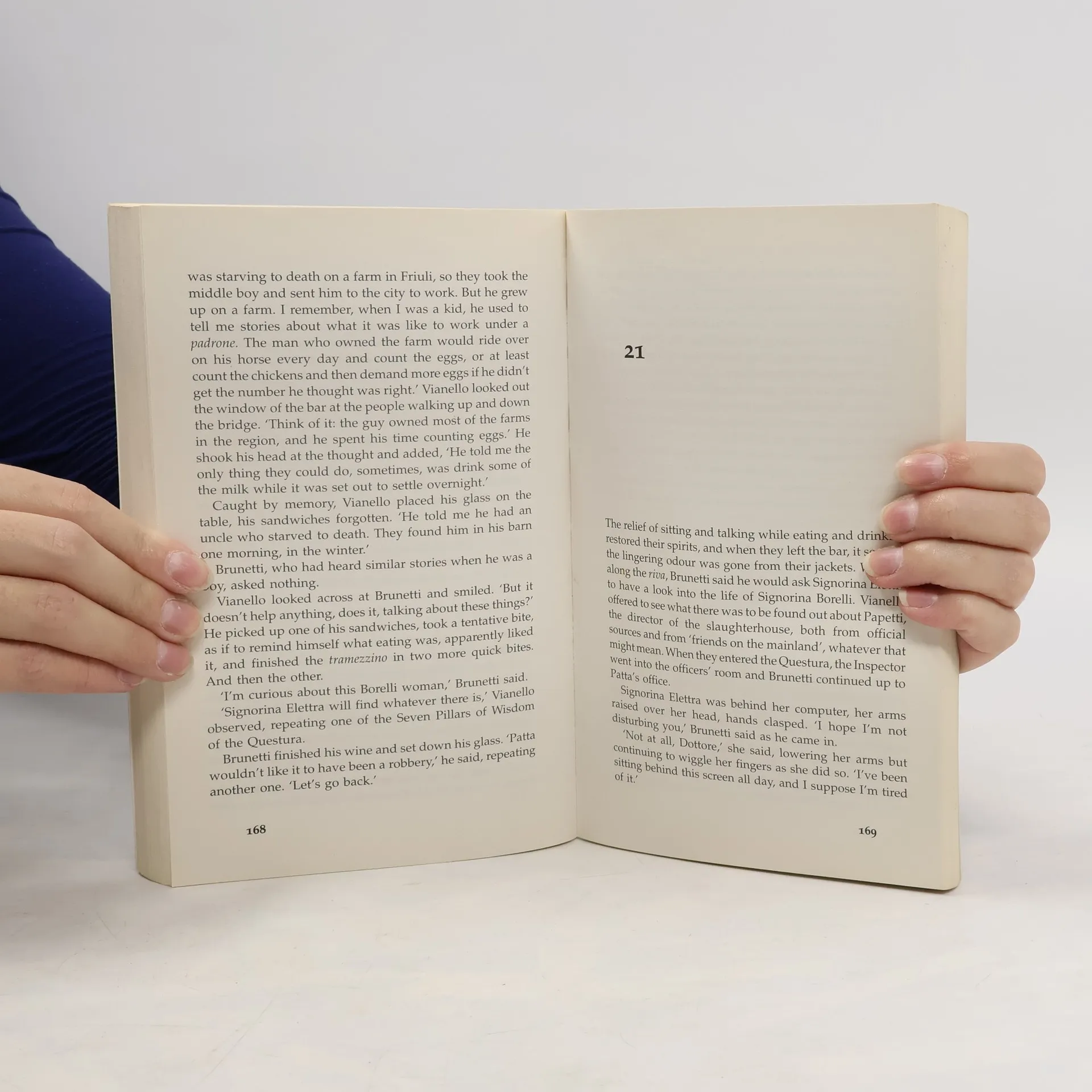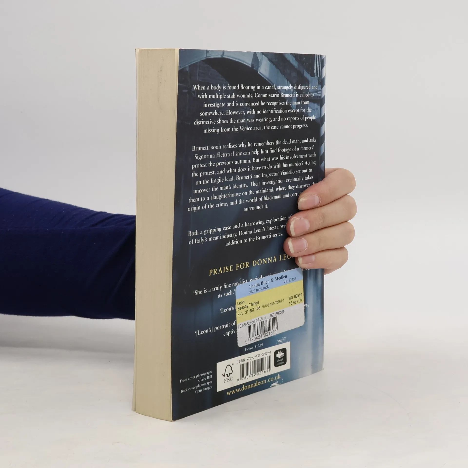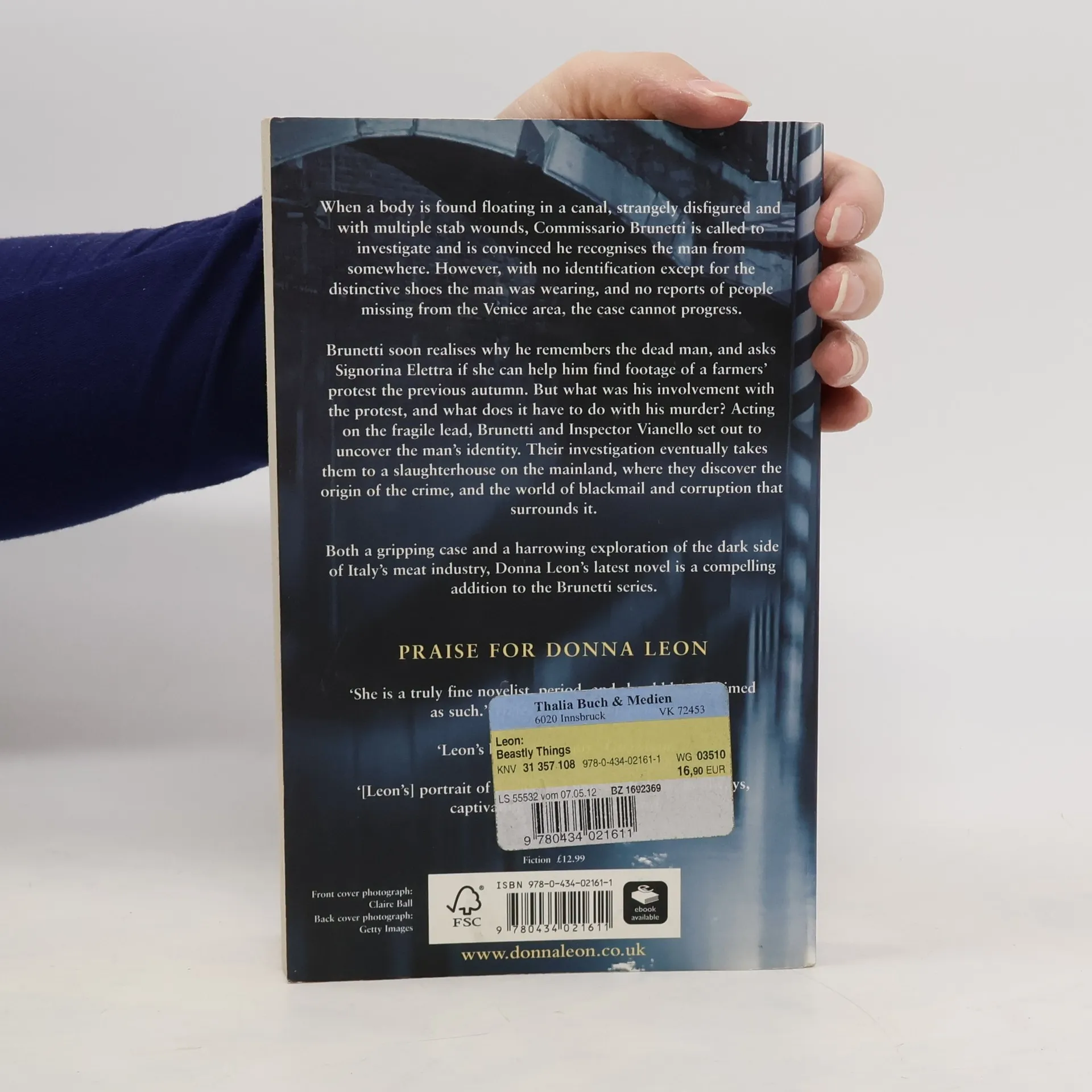 When a man is found stabbed to death floating in the canal, Commissario Brunetti is convinced he recognises him from somewhere. But with no identification on the body and no reports of people missing from the Venice area, it seems as if he has appeared from nowhere, and the case is at a dead end. It doesn't take long for Brunetti to realise why he remembers the dead man - he saw him at a demonstration a couple of years ago, where farmers were protesting about European milk quotas. But what was his involvement with the protest, and could it have anything to do with his murder? Having nothing to go on but the distinctive shoes the man was wearing, and a disease that had left his body strangely deformed, Brunetti and Inspector Vianello set out to try and discover the man's identity. Their investigation eventually takes them to a slaughterhouse at Preganziol, on the mainland. It is there that Brunetti discovers the dead man's connection with the slaughterhouse, and the world of blackmail and corruption that surrounds it. With a gripping case set before a harrowing exploration of the meat industry, Donna Leon's latest novel is a dark and compelling addition to the Brunetti series.