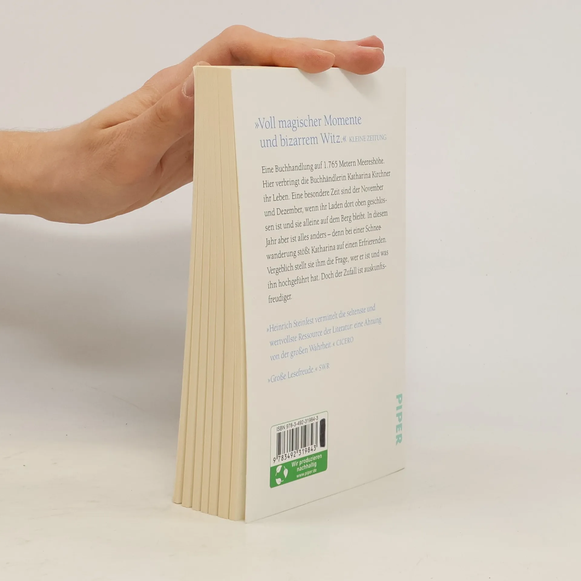 Eine kluge Buchhändlerin und ihr rätselhafter Gast Ohne sie wäre er gestorben, dünn bekleidet, im Eis der Alpen. Das war wohl auch sein Plan, aber Katharina rettet ihn, bietet ihm Unterschlupf. Auf 1700 Metern Höhe betreibt sie eine Buchhandlung, die nun, im November, geschlossen bleibt. Sie behält den Fremden ohne Namen und Gedächtnis bei sich, vorübergehend. Die beiden lesen zusammen, er kocht für sie, und Stück für Stück beginnt er sich zu erinnern. Heinrich Steinfest ergründet die Wege, die Zufall und Schicksal uns einschlagen lassen. Und stellt die Frage, was mit uns geschieht, wenn eine böse Tat das Leben in eine andere Richtung lenkt. »Steinfests so bizarrer wie köstlicher Humor tropft aus jeder Felsritze« Oberösterreich. Nachrichten