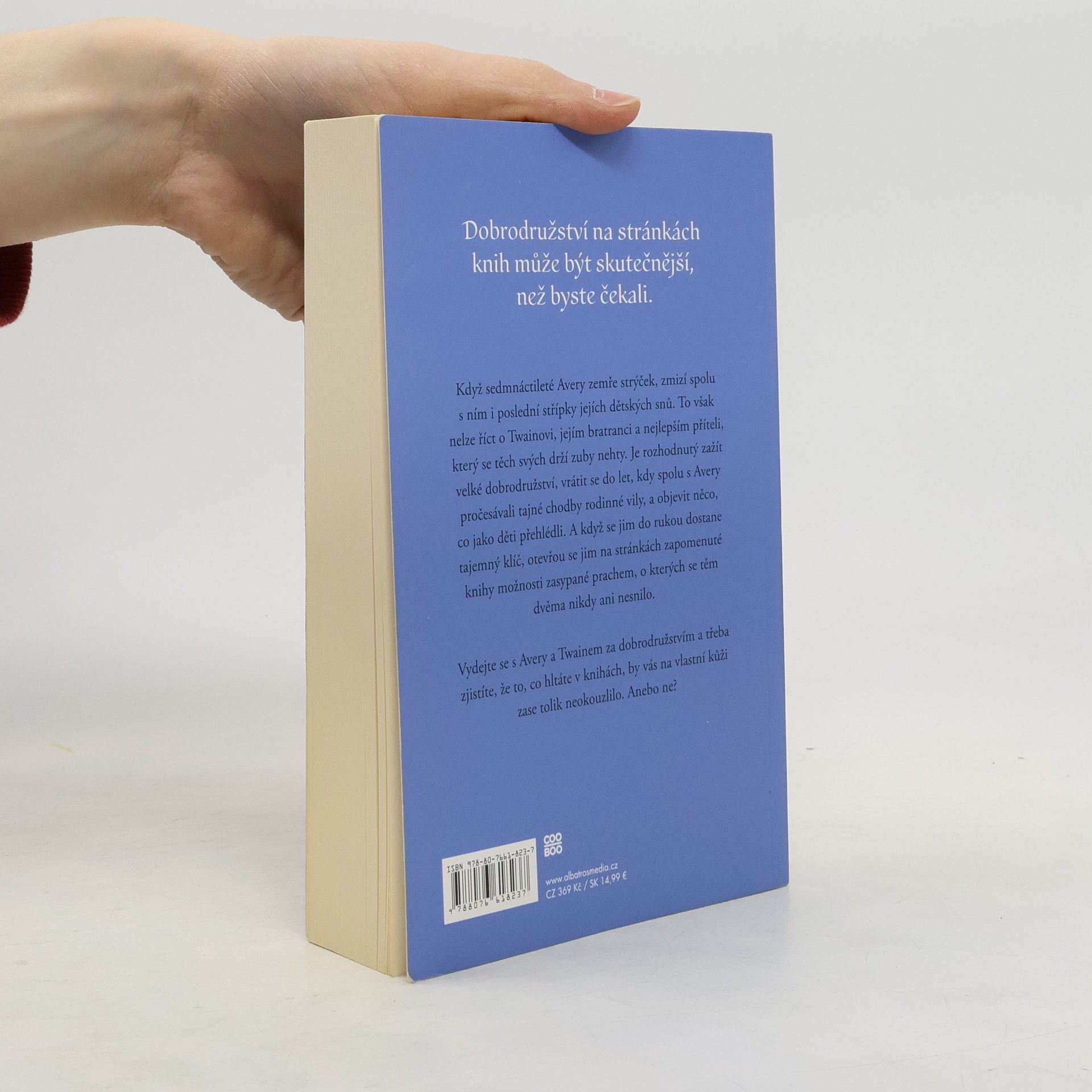 Dobrodružství na stránkách knih může být skutečnější, než byste čekali.Když Avery zemře strýček, zmizí s ním i poslední střípky dětských snů. To ale nelze říct o Twainovi, jejím bratranci a nejlepším příteli, který se těch svých drží zuby nehty. Je rozhodnutý zažít velké dobrodružství, objevit v rodinné vile něco, co jako děti přehlédli. A když se jim do rukou dostane tajemný klíč, otevřou se jim na stránkách zapomenuté knihy možnosti zasypané prachem, o kterých se jim ani nesnilo. To, co hltáte v knihách, by vás na vlastní kůži tolik neokouzlilo… Anebo ne?
