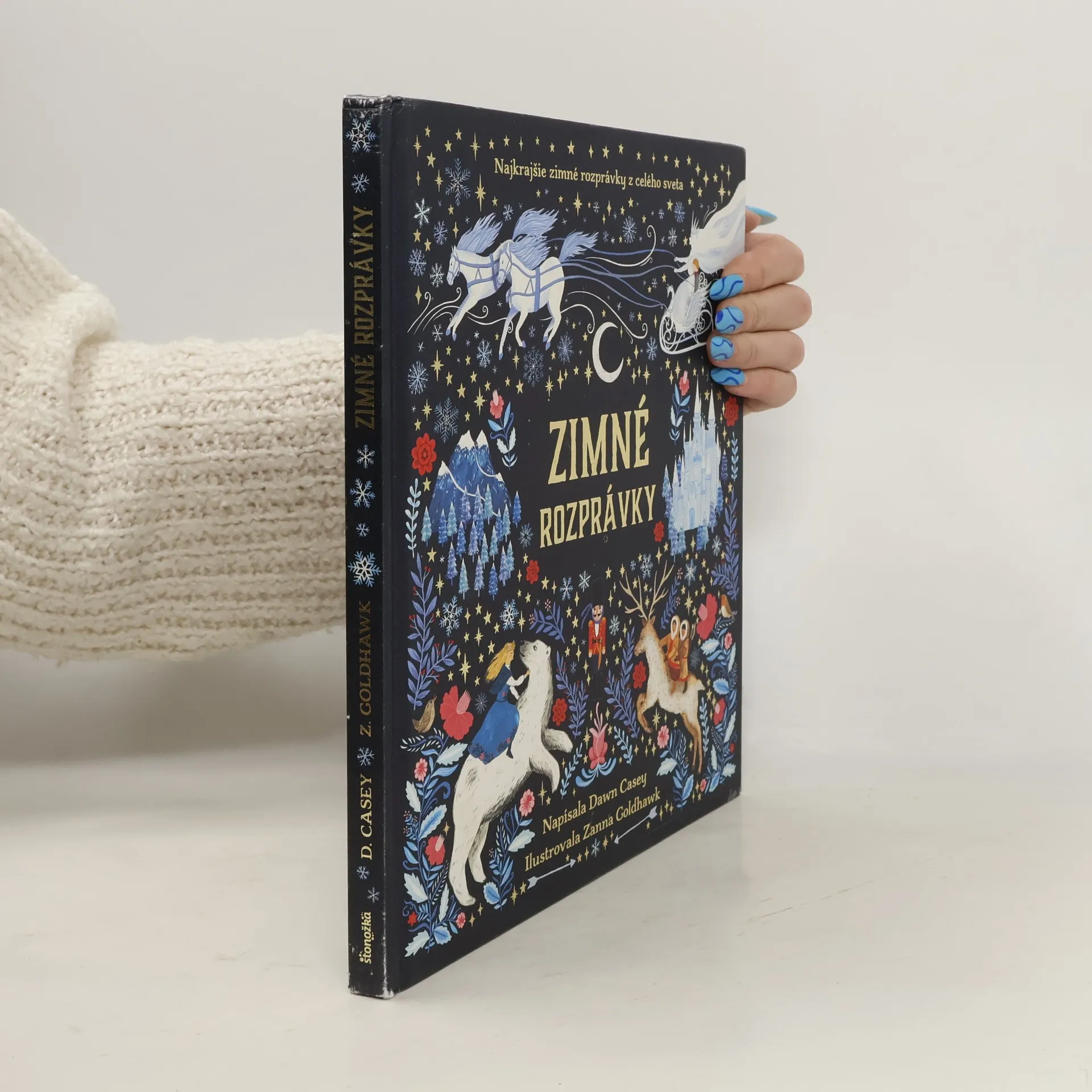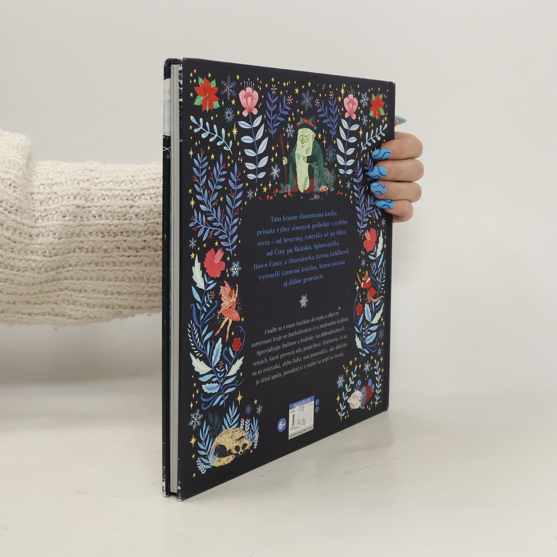 Táto krásne ilustrovaná kniha prináša výber zimných príbehov z celého sveta – od Severnej Ameriky až po Sibír, od Číny po Škótsko. Spisovateľka Dawn Casey a ilustrátorka Zanna Goldhawk vytvorili čarovnú knižku, ktorú ocenia aj ďalšie generácie. Zima bola vždy obdobím, keď si ľudia v teple pri ohni krátili dlhé a tmavé večery rozprávaním príbehov. Po rušnom lete a jeseni sa im naskytol čas zastaviť sa, oddýchnuť si, snívať a fantazírovať... Usaďte sa s touto knižkou do tepla a objavte zamrznuté kraje so Snehulienkou či s medvedím kráľom. Sprevádzajte hrdinov a hrdinky na dobrodružných cestách, ktoré preveria silu priateľstva. Hrdinovia, či už sú to zvieratká, alebo ľudia, nás presvedčia, aké dôležité je držať spolu, pomáhať si a vedieť sa tešiť zo života. Oslávte krásy zimy s týmto výberom nádherne ilustrovaných zimných rozprávok.