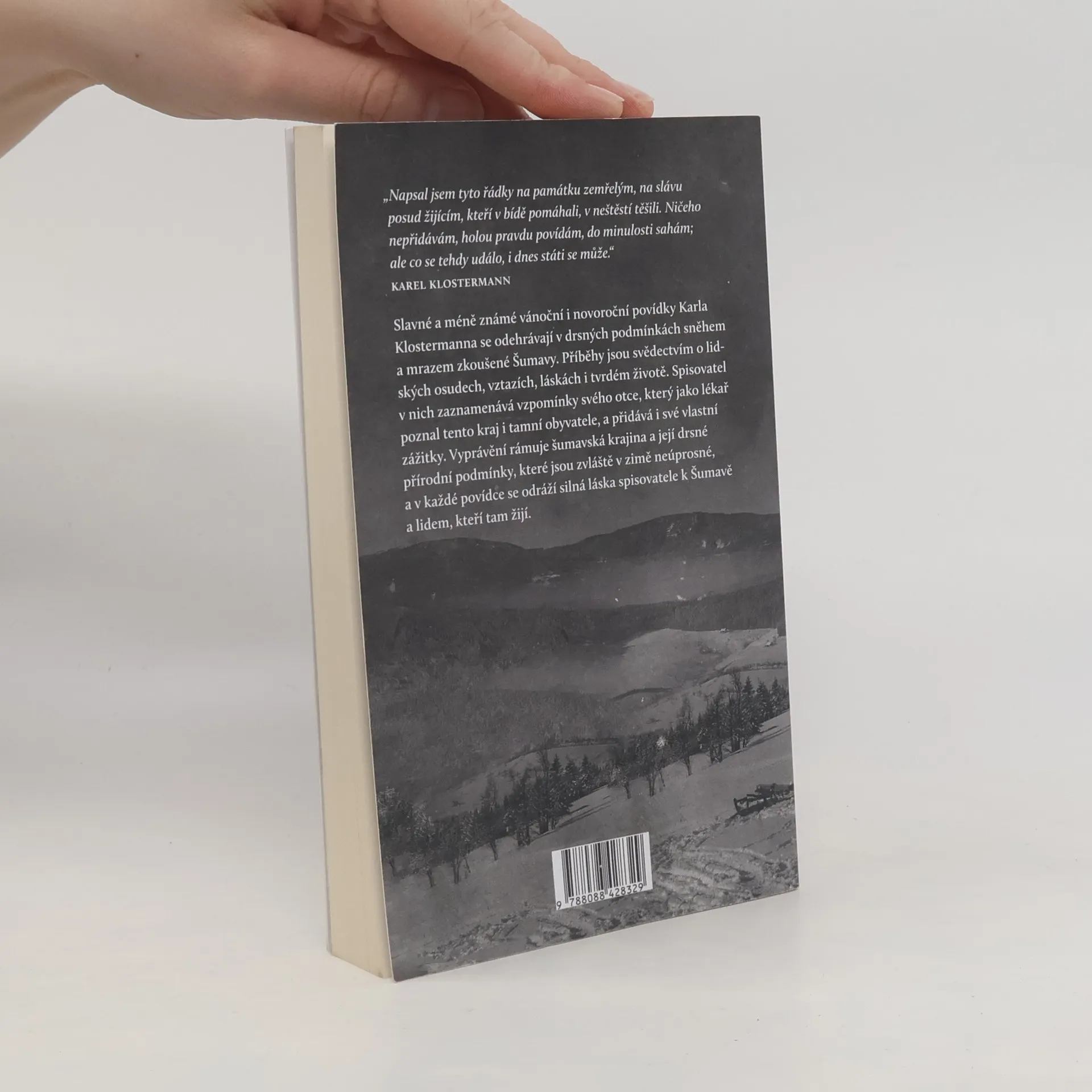 Slavné a méně známé vánoční i novoroční povídky Karla Klostermanna se odehrávají v drsných podmínkách sněhem a mrazem zkoušené Šumavy. Příběhy jsou svědectvím o lidských osudech, vztazích, láskách i tvrdém životě. Spisovatel v nich zaznamenává vzpomínky svého otce, který jako lékař poznal tento kraj i její obyvatele, a přidává i své vlastní zážitky. Vyprávění rámuje šumavská krajina a její drsné přírodní podmínky, které jsou zvláště v zimě neúprosné, a v každé povídce se odráží silná láska spisovatele k Šumavě a lidem, kteří tam žijí. „Napsal jsem tyto řádky na památku zemřelým, na slávu posud žijícím, kteří v bídě pomáhali, v neštěstí těšili. Ničeho nepřidávám, holou pravdu povídám, do minulosti sahám; ale co se tehdy událo, i dnes státi se může.“ Karel Klostermann