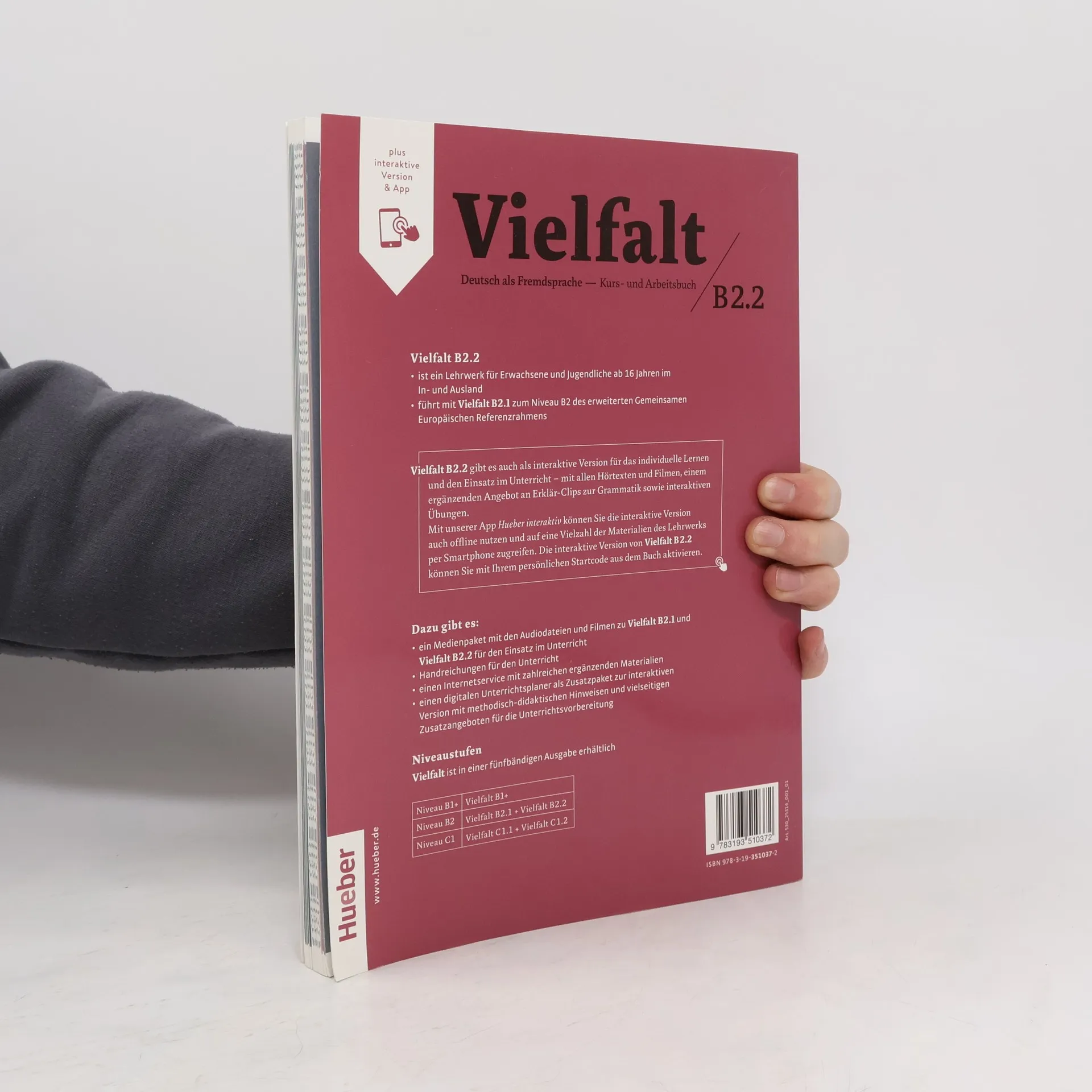 Zielniveau B2.2 Das Kurs- und Arbeitsbuch für Deutsch als Fremdsprache bietet eine interaktive Version und richtet sich an Erwachsene und Jugendliche ab 16 Jahren in B2.2-Kursen. Der modulare Aufbau umfasst vier Module mit jeweils drei kurzen Lektionen, die durch emotionale Filmsequenzen eingeleitet werden. Diese zeigen vielfältige Protagonisten und ermöglichen einen persönlichen Zugang zu aktuellen, lebensnahen Themen. Extra-Beruf-Seiten bieten berufsübergreifende Szenarien und Sprachhandlungen. Plurilingualität wird durch sprachvergleichende Aufgaben gefördert, während Plurikulturalität spannende Aufgabenstellungen für Perspektivenwechsel und wertedialoge einlädt. Die Wortschatzarbeit erfolgt thematisch und systematisch. Weitere Filme zeigen Beispielantworten von Deutschlernenden weltweit als erreichbare Sprachmodelle. Erklär-Clips zur Grammatik unterstützen Präsenz- und Online-Unterricht sowie individuelles Lernen. Ein illustriertes Methodenglossar im Anhang sorgt für einen kooperativen Unterricht. Das Arbeitsbuch enthält Wiederholungen von relevantem Wortschatz und Grammatik, abwechslungsreiche Übungen in authentischen Kontexten sowie gezieltes Üben der Textproduktion. Am Ende jeder Lektion finden sich Ausspracheübungen und Selbsttests, während gezielte Prüfungsvorbereitungen am Ende jedes Moduls angeboten werden. Ein Lernwortschatz im Anhang rundet das Angebot ab.
