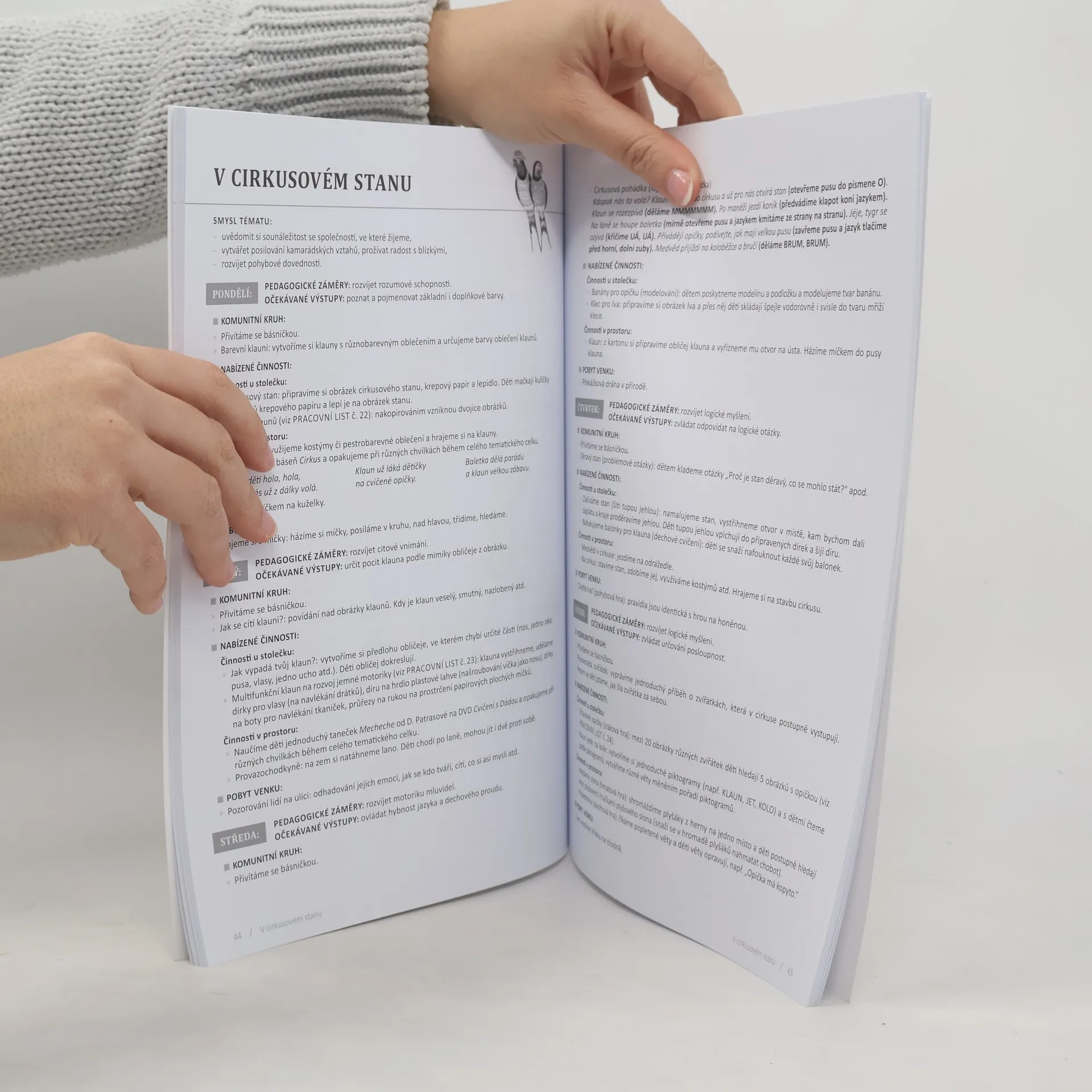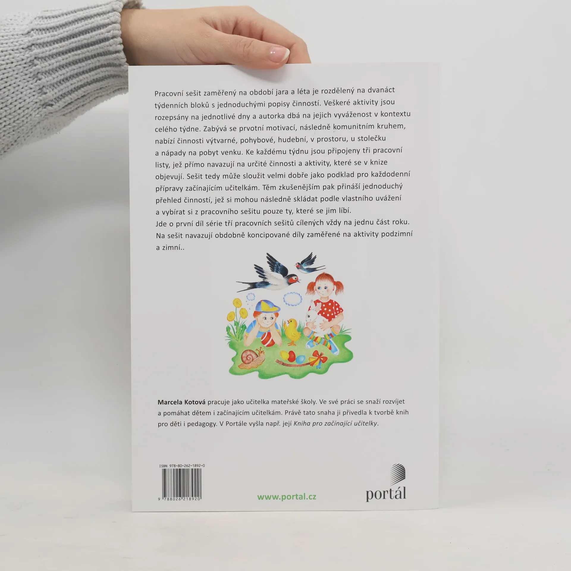 Podtitul: Tématické celky a pracovní listy pro MŠ. Pracovní sešit zaměřený na období jara a léta je rozdělený na dvanáct týdenních bloků s jednoduchými popisy činností. Veškeré aktivity jsou rozepsány na jednotlivé dny a autorka dbá na jejich vyváženost v kontextu celého týdne. Zabývá se prvotní motivací, následně komunitním kruhem, nabízí činnosti výtvarné, pohybové, hudební, v prostoru, u stolečku a nápady na pobyt venku. Ke každému týdnu jsou připojeny tři pracovní listy, které přímo navazují na určité činnosti a aktivity, které se v knize objevují. Sešit tedy může sloužit velmi dobře jako podklad pro každodenní přípravy začínajícím učitelkám. Těm zkušenějším pak přináší jednoduchý přehled činností, které si mohou následně skládat podle vlastního uvážení a vybírat si z pracovního sešitu pouze ty, které se jim líbí. Jde o první díl série tří pracovních sešitů cílených vždy na jednu část roku. Na sešit budou navazovat obdobně koncipované další dva díly zaměřené na aktivity podzimní a zimní.