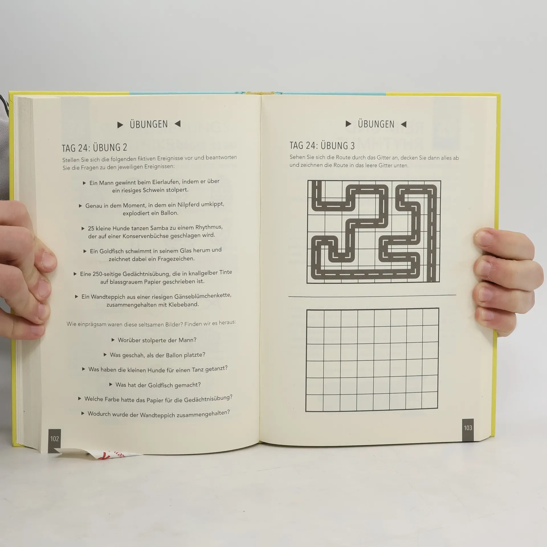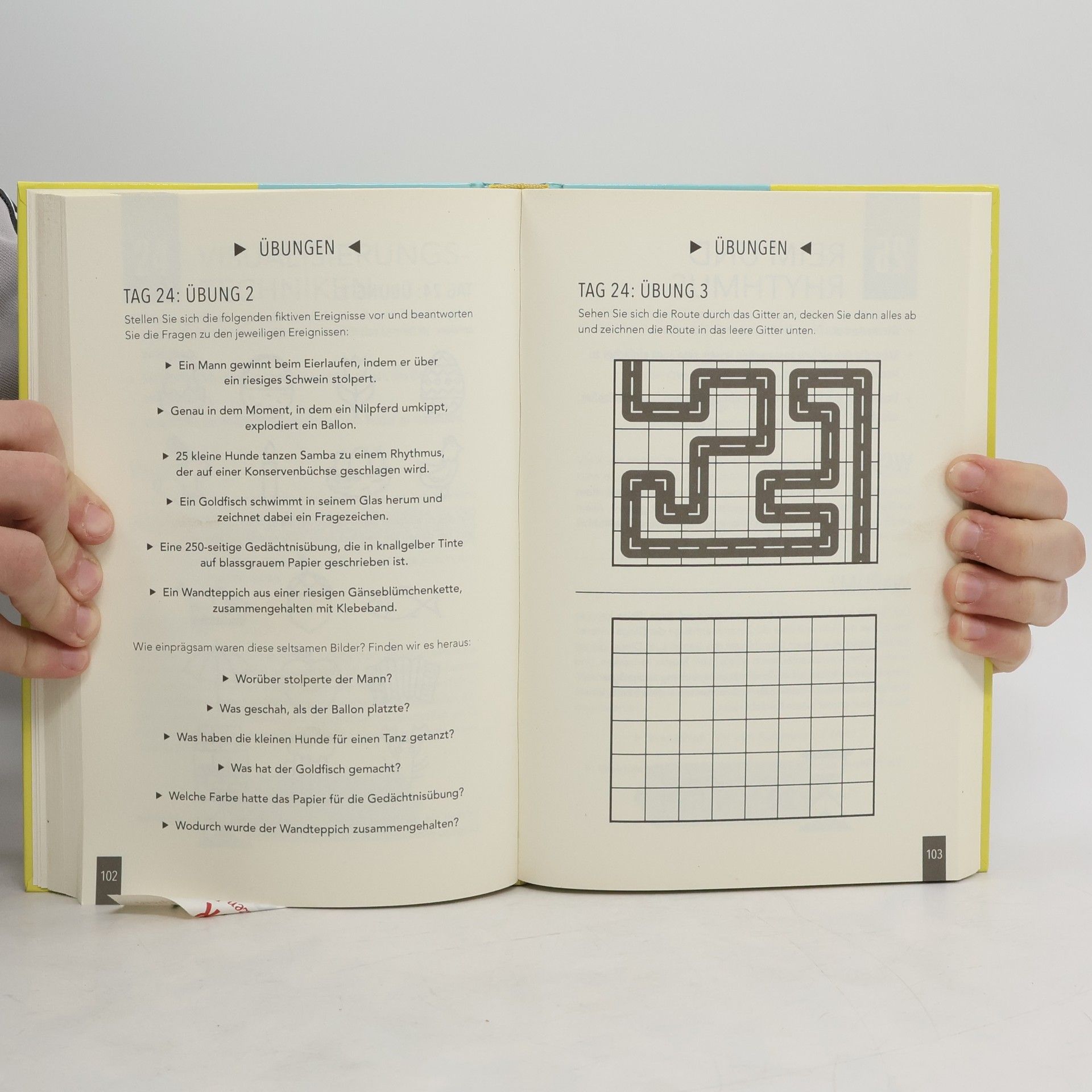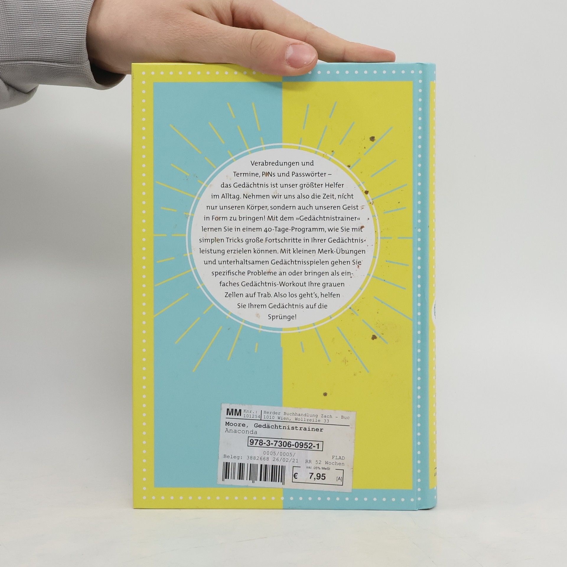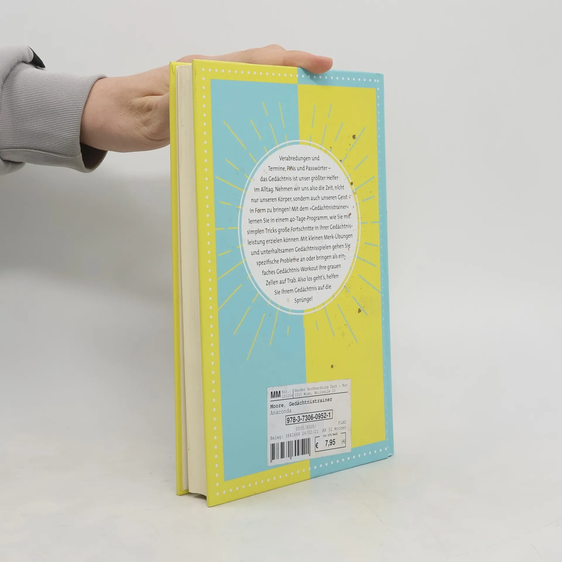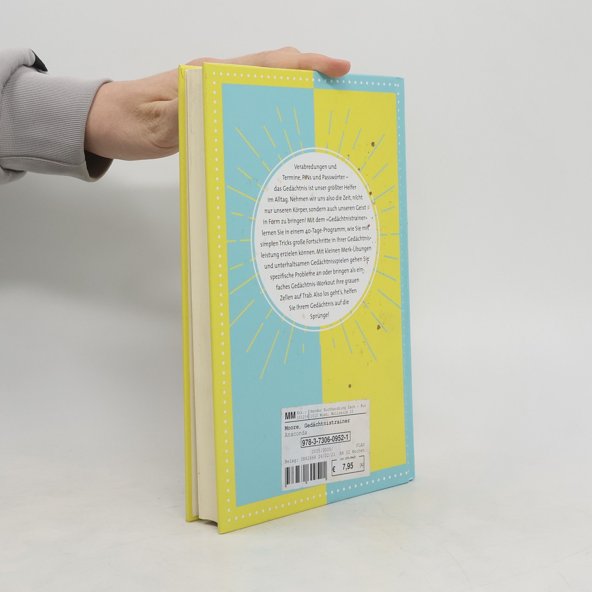 Verabredungen und Termine, PINs und Passwörter – das Gedächtnis ist unser größter Helfer im Alltag. Nehmen wir uns also die Zeit, nicht nur unseren Körper, sondern auch unseren Geist in Form zu bringen! Mit dem »Gedächtnistrainer« lernen Sie in einem 40-Tage-Programm, wie Sie mit simplen Tricks große Fortschritte in Ihrer Gedächtnisleistung erzielen können. Mit kleinen Merk-Übungen und unterhaltsamen Gedächtnisspielen gehen Sie spezifische Probleme an oder bringen als einfaches Gedächtnis-Workout Ihre grauen Zellen auf Trab. Also los geht’s, helfen Sie Ihrem Gedächtnis auf die Sprünge! Ausstattung: zahlr. s/w-Illustrationen