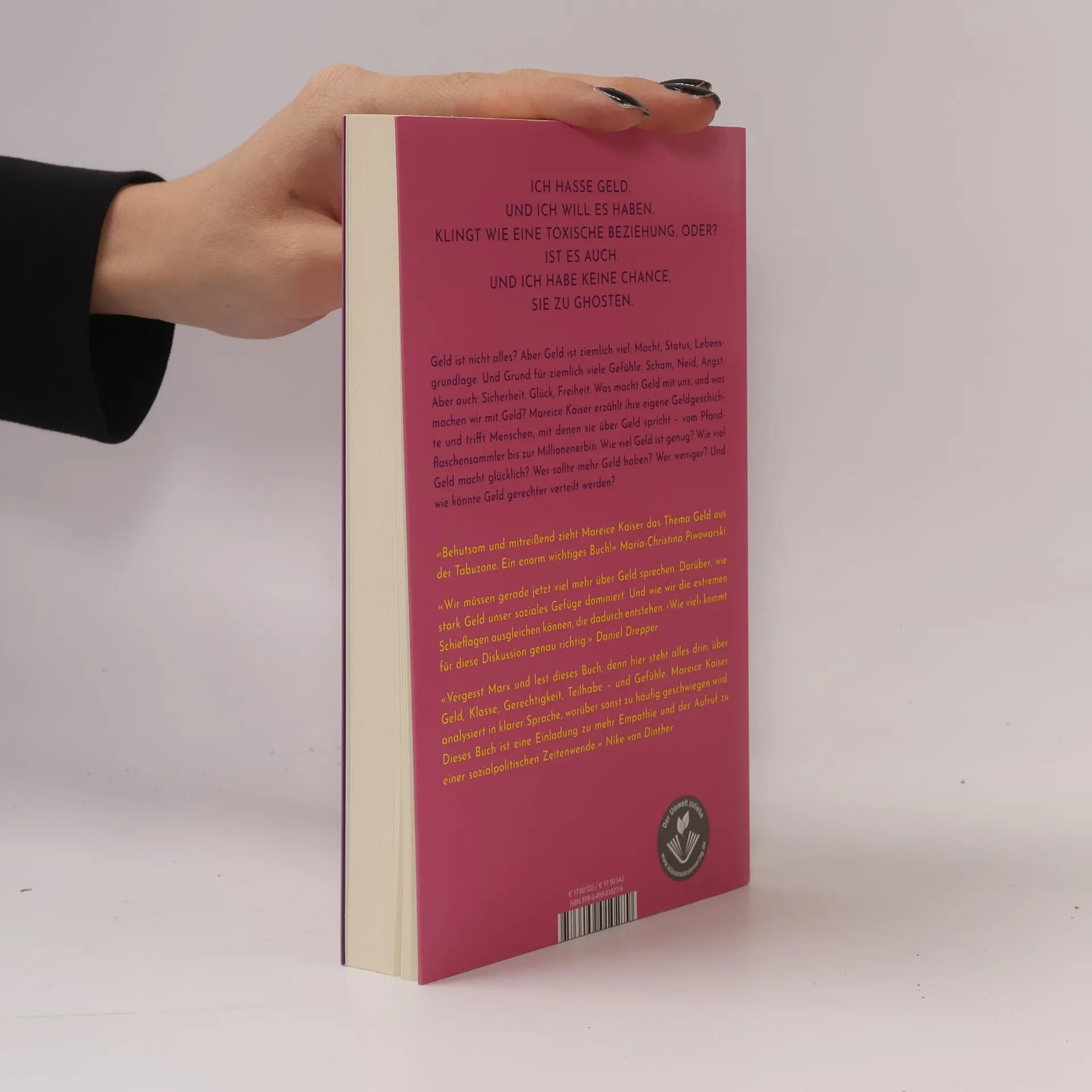 Geld ist nicht alles? Aber Geld ist ziemlich viel: Macht, Status, Lebensgrundlage. Und Grund für ziemlich viele Gefühle: Scham, Neid, Eifersucht. Aber auch Sicherheit, Glück, Freiheit. Was macht Geld mit uns, und was machen wir mit Geld? Mareice Kaiser erzählt ihre eigene Geldgeschichte und trifft Menschen, mit denen sie über Geld spricht. Vom Pfandflaschensammler bis zum Multi-Millionär stellt sie ihnen Fragen: Wie viel Geld ist genug? Wie viel Geld macht glücklich? Wer sollte mehr Geld haben? Wer weniger? Und wie könnte Geld gerechter verteilt sein? Es geht um Armut und Reichtum, um Kälte und Wärme, um Kreditkarten und Mahnungen, um Erfolg und Not, um Chancen und Schicksal, um Macht und Machtlosigkeit – und um das Dazwischen. Außerdem um einen Blick auf ein Land, in dem die einen frieren müssen, während die anderen von Fußbodenheizungen gewärmt werden. So entsteht eine Analyse, die entlang persönlicher Geschichten eine Struktur zeigt, die zutiefst ungerecht ist und unser aller Zusammenleben bestimmt.