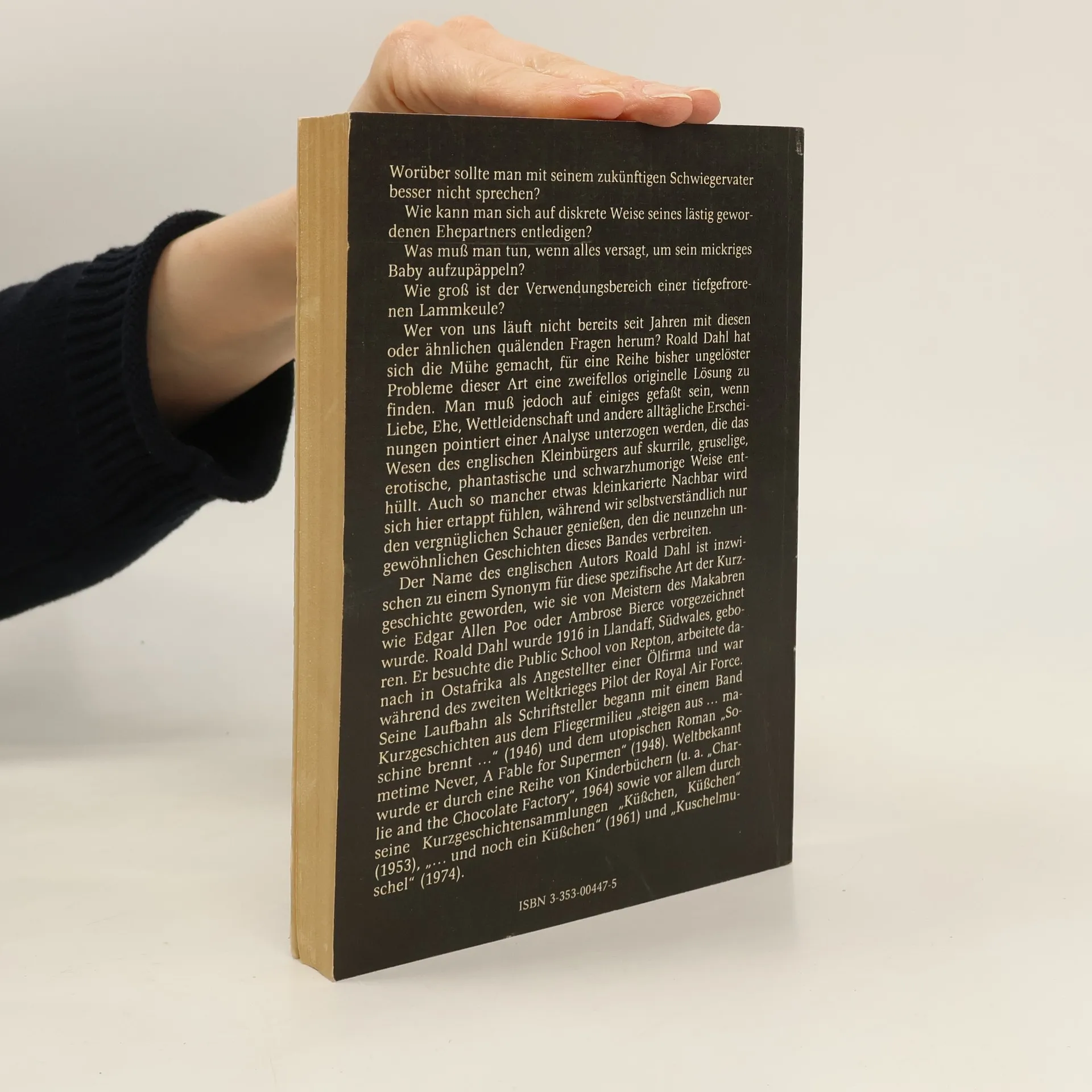 Der bekannte walisische Autor Roald Dahl (geb. 1916) nimmt in "Lammkeule und andere Geschichten" in pointierten, teils schauerlich-makabren Kabinettstückchen und Kurzprosa mit Mitteln der Skurrilität und des schwarzen Humors menschliche Schwächen auf Korn. In "Kuschelmuschel" sind dagegen vier Erzählungen zusammengefaßt, in deren Mittelpunkt der überraschende Einfall steht. Es geht um desillusionierende amouröse Abenteuer, Partnertausch oder die Erfindung eines Sexualparfüms, wobei die Figuren meist karikierend gezeichnet sind und die makabre Handlung vergnüglichen bis beklemmenden Unterhaltungswert vermittelt