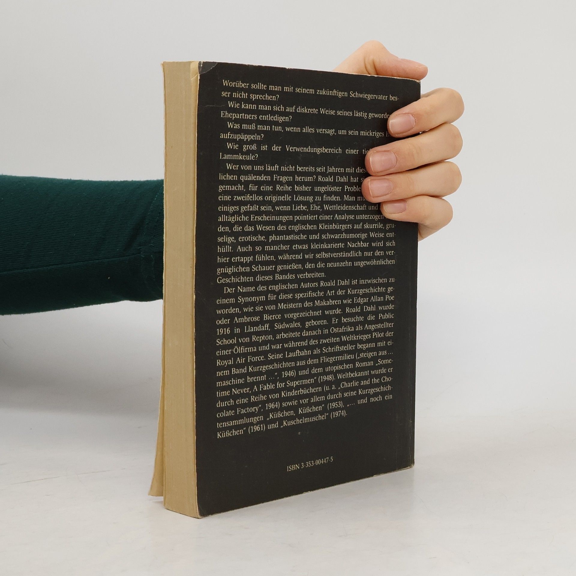 Der bekannte walisische Autor Roald Dahl (geb. 1916) nimmt in "Lammkeule und andere Geschichten" in pointierten, teils schauerlich-makabren Kabinettstückchen und Kurzprosa mit Mitteln der Skurrilität und des schwarzen Humors menschliche Schwächen auf Korn. In "Kuschelmuschel" sind dagegen vier Erzählungen zusammengefaßt, in deren Mittelpunkt der überraschende Einfall steht. Es geht um desillusionierende amouröse Abenteuer, Partnertausch oder die Erfindung eines Sexualparfüms, wobei die Figuren meist karikierend gezeichnet sind und die makabre Handlung vergnüglichen bis beklemmenden Unterhaltungswert vermittelt