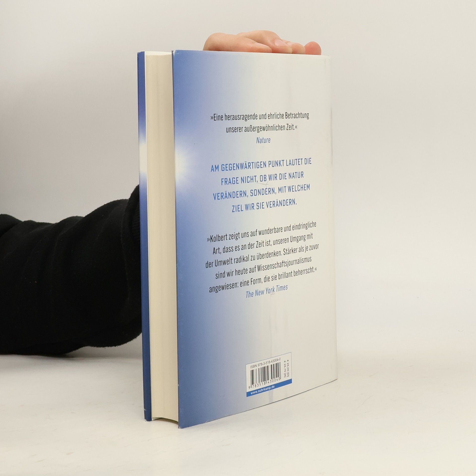 Aus dem biblischen Auftrag, sich die Erde untertan zu machen, ist düstere Realität geworden: Wir befinden uns mitten in einem Artensterben gigantischen Ausmaßes. Das Klima verändert sich, weil wir das Klima verändern. So tiefgreifend beeinflusst unser Handeln den Planeten, dass Wissenschaftler vom Erdzeitalter des Menschen sprechen, dem Anthropozän. In ihrem neuen Buch gewährt uns Elizabeth Kolbert einen Blick auf die Natur der Zukunft. Die Pulitzer-Preisträgerin erzählt von Ingenieuren, die mit aberwitzigen Folgen für das Ökosystem den Verlauf von Flüssen ändern oder ganze Küstenstreifen vor dem ansteigenden Meerwasser schützen. Sie trifft Biologen, die den Teufelskärpfling, den wohl seltensten Fisch der Erde, retten wollen, und sie berichtet von den kühnen Plänen, CO2 aus der Luft zu saugen oder winzig kleine Diamanten in der Stratosphäre zu verteilen. Temporeich schildert Kolbert das Dilemma, vor dem wir stehen: Unsere Eingriffe in die Umwelt haben uns an einen Punkt geführt, an dem diese Versuche die letzte Hoffnung im Kampf gegen die globale Erderwärmung sind. Vielleicht sind sie aber auch der letzte Schritt auf dem Weg in die Klimakatastrophe.