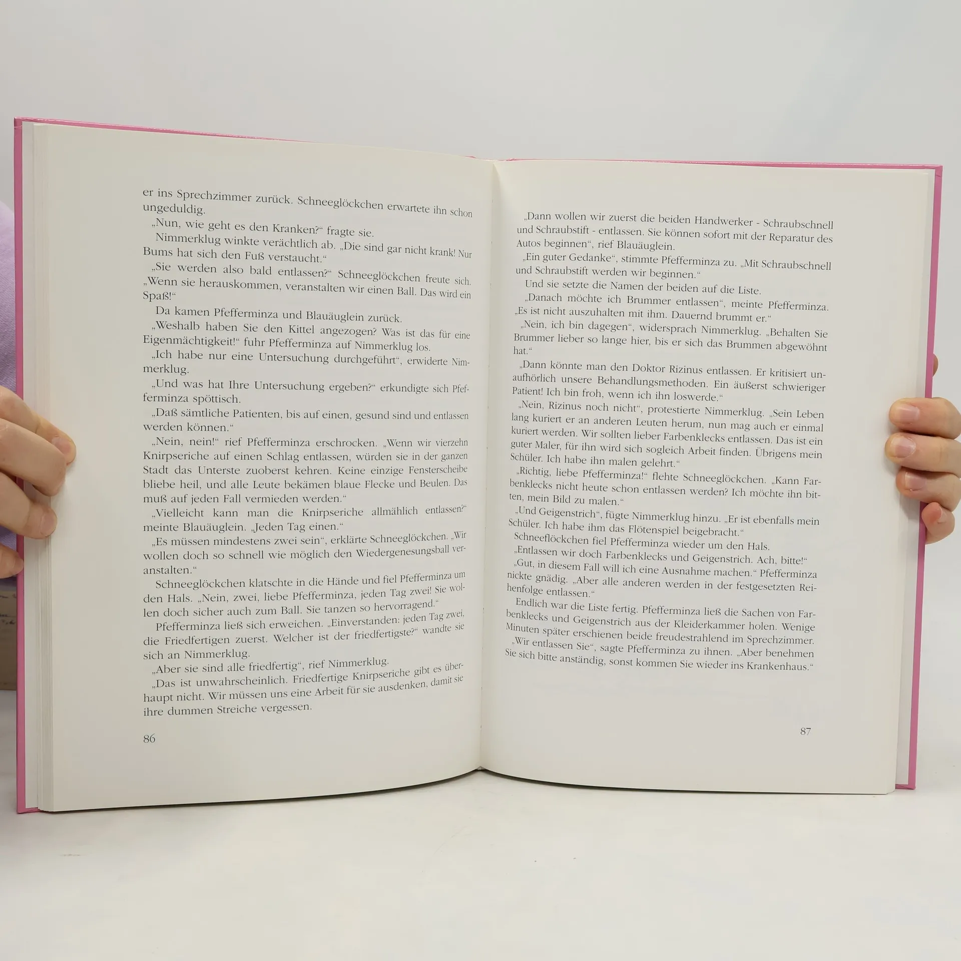 In einer Märchenstadt wohnen die Knirpse. Klein und flink sind sie, die Knirpseriche und Knirpselinen, zanken sich und vertragen sich, faul und fleißig sind sie, lustig und vergnügt. Der Klügste und Weiseste ist Immerklug. Der Faulste und Frechste ist Nimmerklug.