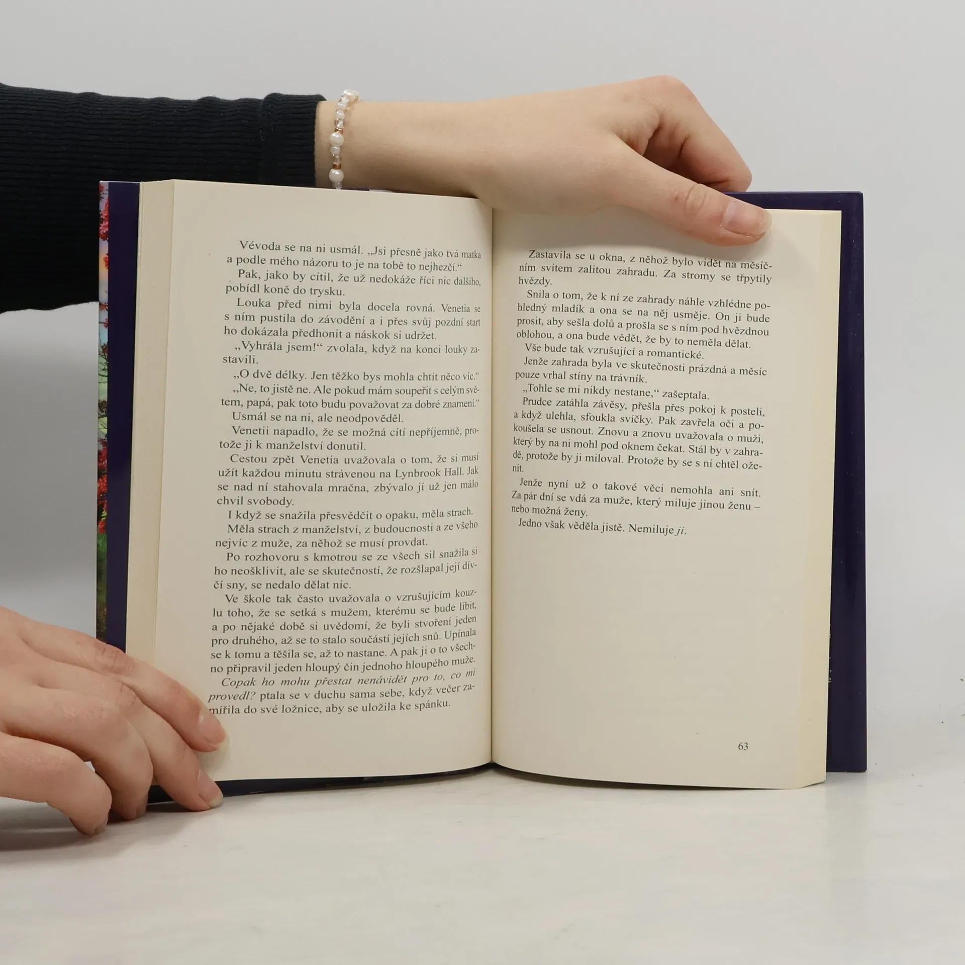 Mladičká Venetia, dcera vévody z Lynbrooku, studuje v klášterní škole ve Francii. Je zcela ponořená do učení a příliš se nezajímá o svět za branami kláštera – a ještě méně o muže. Jaké je proto její překvapení, když pro ni nechá poslat její otec a po návratu do Londýna jí sdělí, že se má provdat za vévodu z Rockinstonu. A sňatek se má konat už za čtrnáct dní! Venetia se pokusí svému otci vysvětlit, že se sňatku nebrání, ale chtěla by se vdávat z lásky – a pokud by to nebylo možné, tak by alespoň ráda svého nastávajícího předem viděla. Její otec je však k jejím námitkám zcela hluchý. Vnímavá Venetia pochopí, že jí něco tají. Provdá se nakonec Venetia za muže, jehož jí vybral otec? A co vlastně vedlo vévodu z Rockinstonu k tomu, aby si ze všech dívek v Anglii vybral právě Venetii? A pokud k sňatku opravdu dojde, budou spolu šťastní?