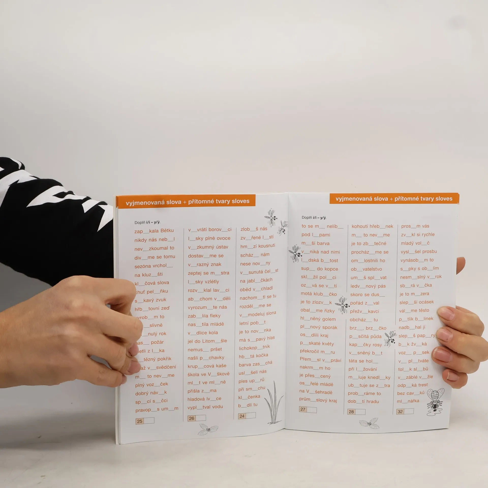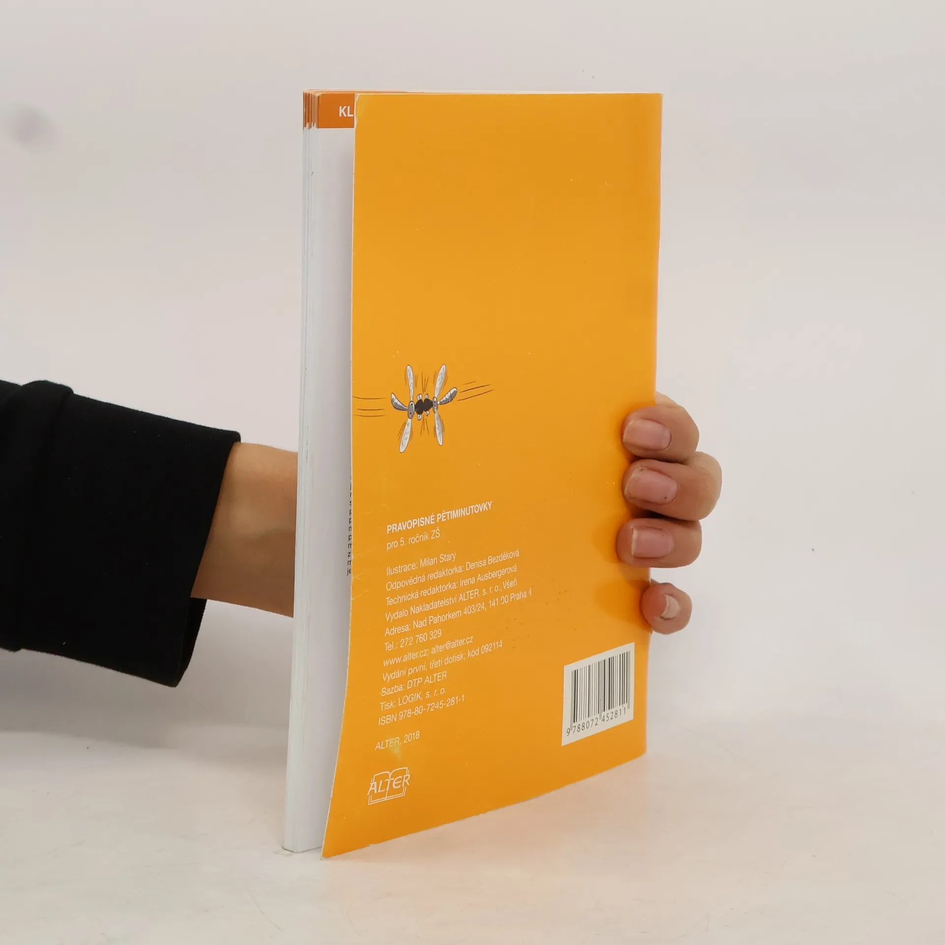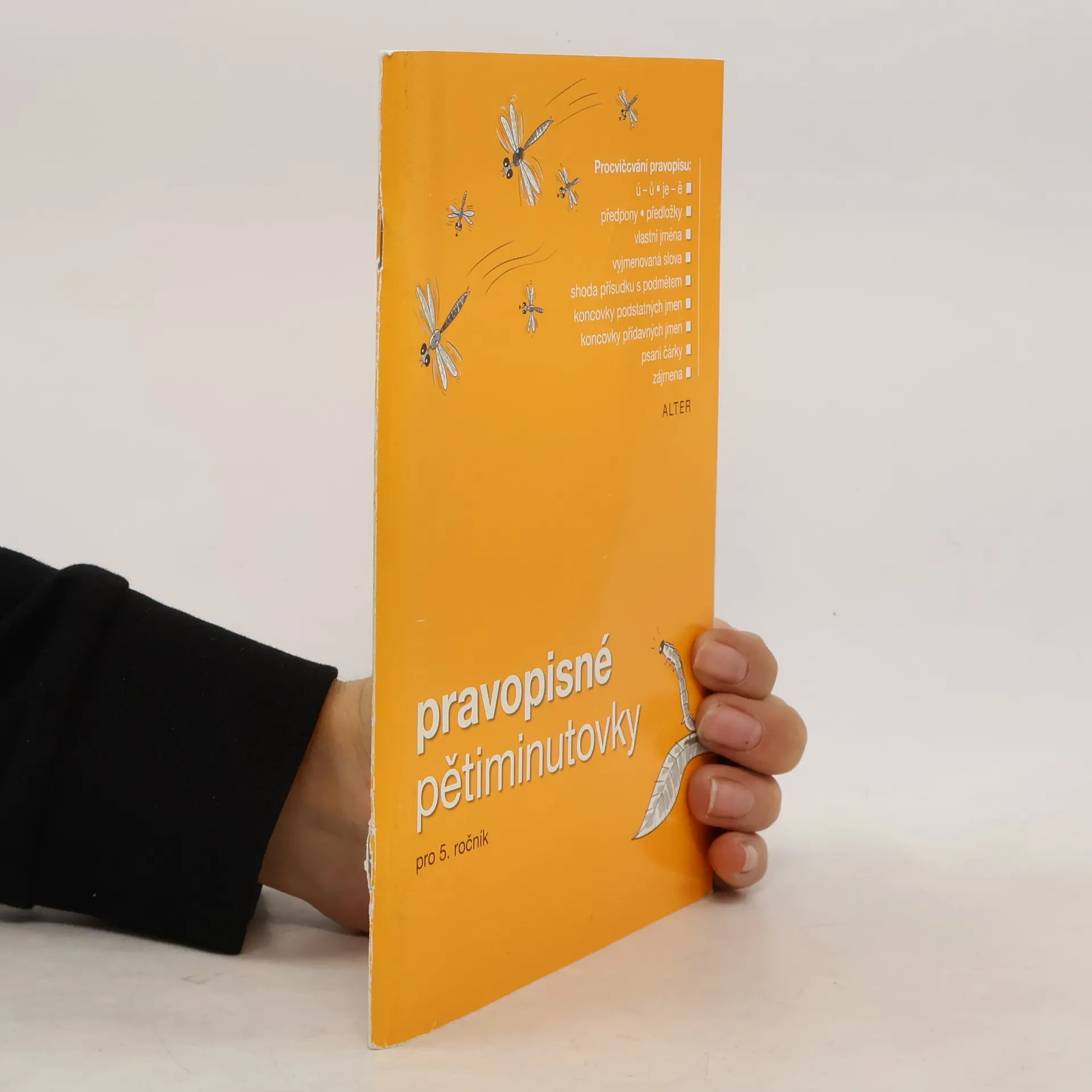 Pracovní sešit k efektivnímu procvičování pravopisných jevů probíraných v 5. ročníku obsahuje sloupce slovních spojení a vět, do nichž žáci doplňují náležitá písmena nebo interpunkci. Z obsahu: ú – ů; předpony; předložky; písmena na švu kořene a předpony; vyjmenovaná slova a slova s nimi příbuzná; vlastní jména; přítomné tvary sloves; shoda přísudku s podmětem; koncovky podstatných a přídavných jmen; čárka ve větě a v souvětí; zájmena. Součástí sešitu je klíč s řešeními. Titul završuje řadu Pravopisných pětiminutovek pro 2.–5. ročník.