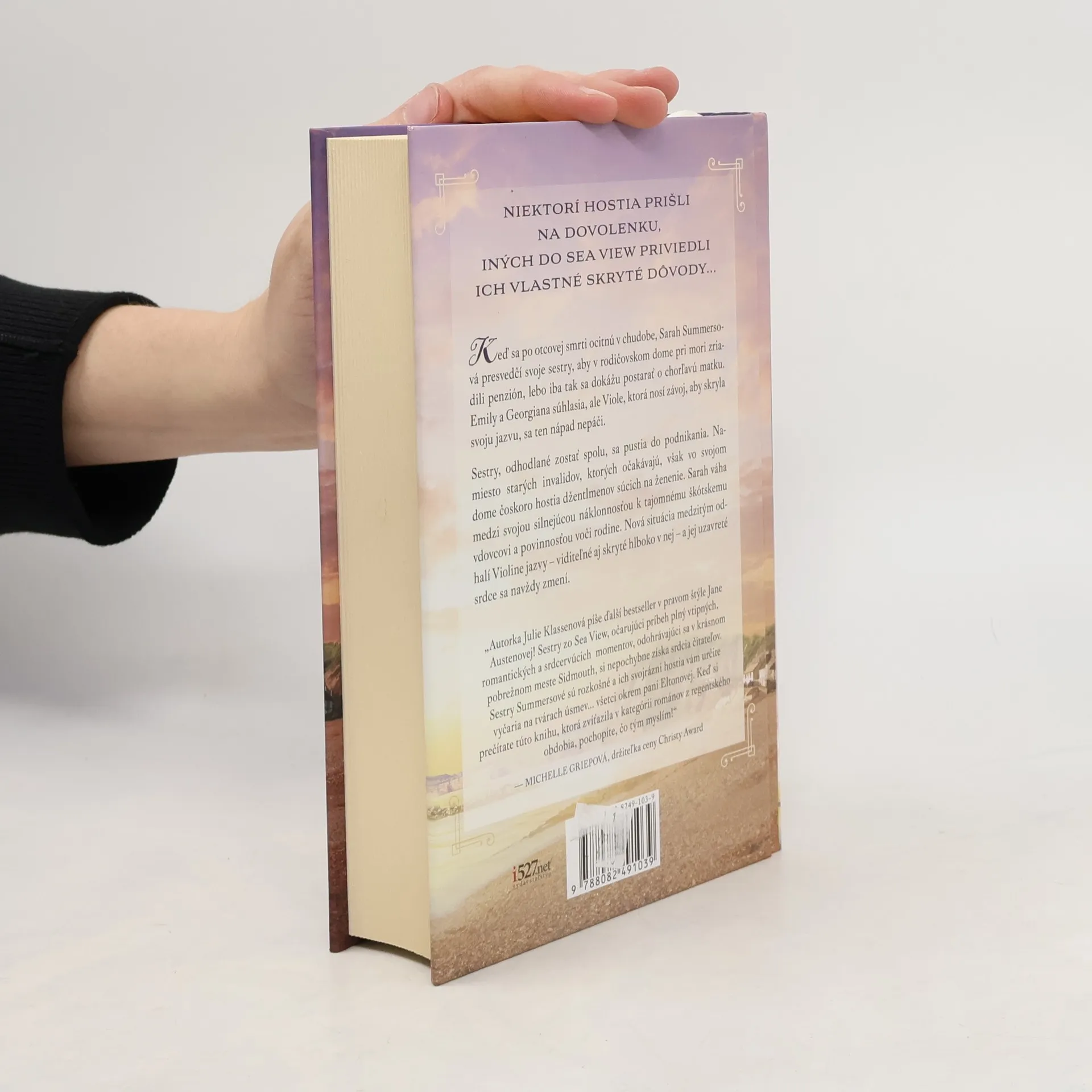 Niektorí hostia prišli na dovolenku, iných do Sea View priviedli ich vlastné skryté dôvody... Keď sa po otcovej smrti ocitnú v chudobe, Sarah Summersová presvedčí svoje sestry, aby v rodičovskom dome pri mori zriadili penzión, lebo iba tak sa dokážu postarať o chorľavú matku. Emily a Georgiana súhlasia, ale Viole, ktorá nosí závoj, aby skryla svoju jazvu, sa ten nápad nepáči. Sestry, odhodlané zostať spolu, sa pustia do podnikania. Namiesto starých invalidov, ktorých očakávajú, však vo svojom dome čoskoro hostia džentlmenov súcich na ženenie. Sarah váha medzi svojou silnejúcou náklonnosťou k tajomnému škótskemu vdovcovi a povinnosťou voči rodine. Nová situácia medzitým odhalí Violine jazvy -- viditeľné aj skryté hlboko v nej -- a jej uzavreté srdce sa navždy zmení.