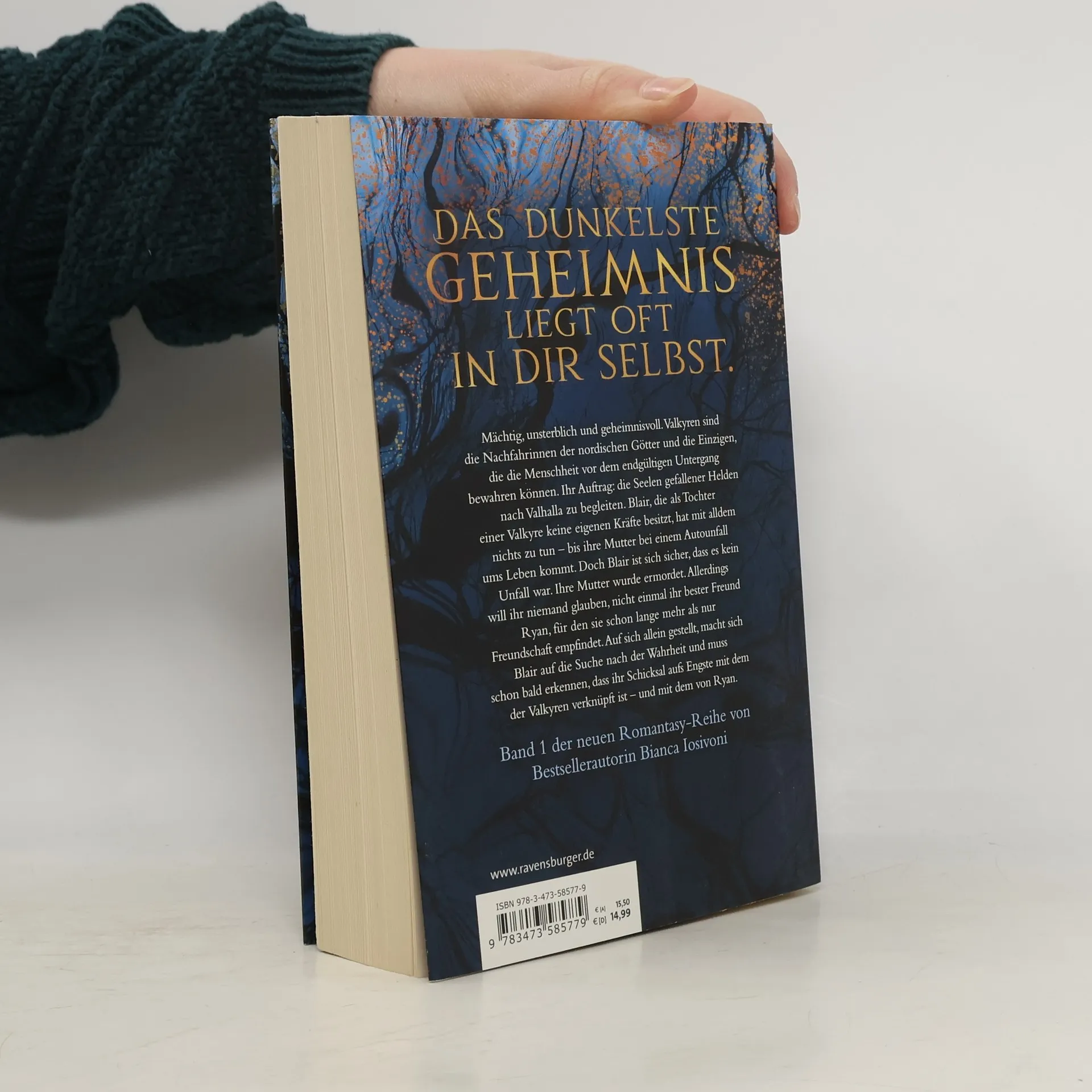 Das dunkelste Geheimnis liegt oft in dir selbst. Unsterblich und geheimnisvoll sind die Valkyren, Nachfahrinnen der nordischen Götter und die Einzigen, die die Menschheit beschützen können. Blair, Tochter einer Valkyre, hat keine eigenen Kräfte und fühlt sich von all dem distanziert – bis ihre Mutter bei einem Autounfall stirbt. Auf der Suche nach Antworten mit ihrem besten Freund Ryan entdeckt sie, dass ihr Schicksal eng mit dem der Valkyren und Ryan verknüpft ist. In einer entscheidenden Szene hält Blair Ryans Blick fest und spürt trotz der Kälte und der Kämpfenden in der Nähe eine starke Verbindung zu ihm. „Du kannst mich nicht für immer beschützen. Ich bin ein Teil davon“, sagt sie. Ryan reagiert sanft, und in diesem Moment, in dem sie alles gesagt haben, bleiben sie stehen, während ihre Atemzüge in der frostigen Winterluft verschmelzen. Ryan berührt sie zärtlich, als wäre sie eine Illusion, die jeden Moment verschwinden könnte. Sein warmer Atem streift ihre Lippen, und sie spürt das Hämmern seines Herzens unter ihrer Hand. Blair ist verwirrt, aber sie weiß, dass sie nicht will, dass dieser Moment endet. Sie ist noch nicht bereit, in die Realität zurückzukehren.