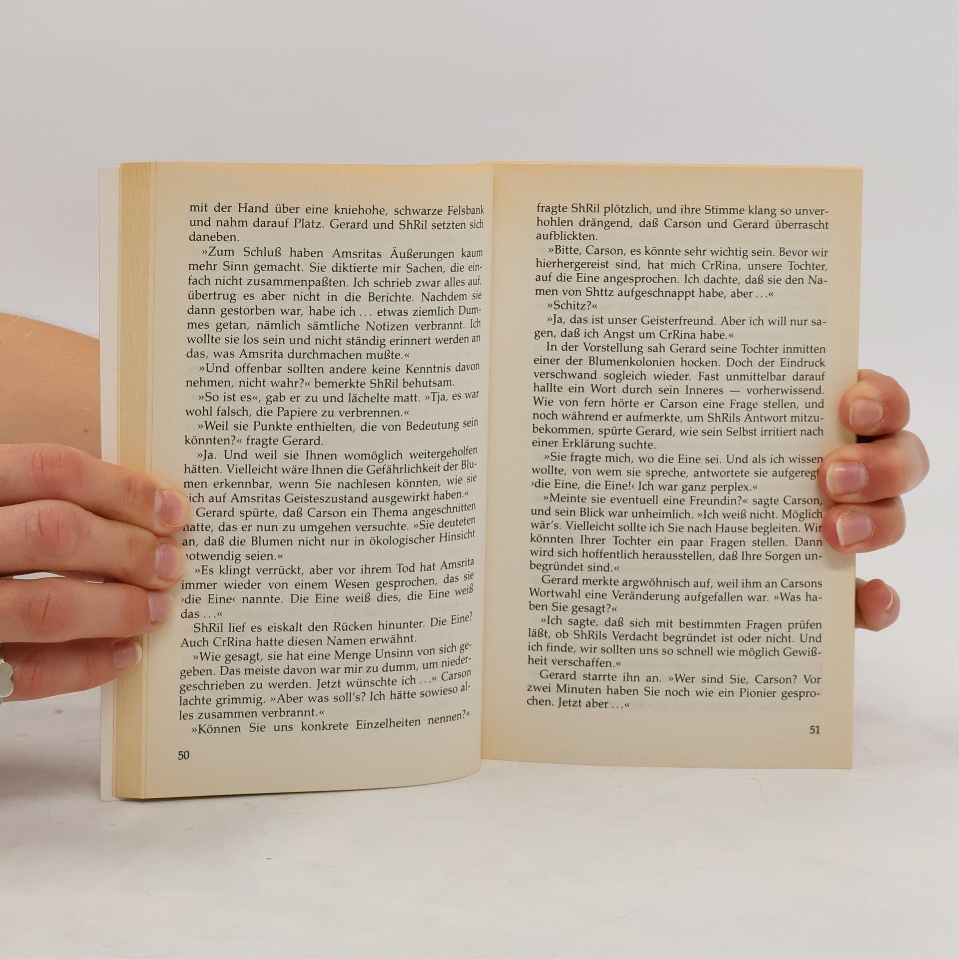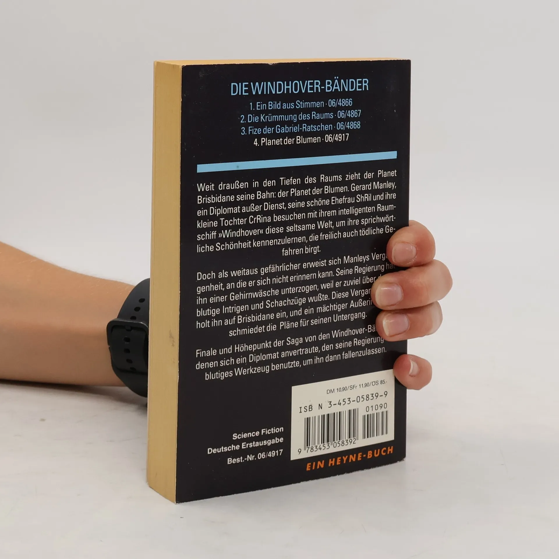 Die Windhover-Bänder: 1. Ein Bild aus Stimmen 06/4866 2. Die Krümmung des Raums . 06/4867 3. Fize der Gabriel-Ratschen 06/4868 4. Planet der Blumen 06/4917 =================================== Weit draußen in den Tiefen des Raums zieht der Planet Brisbidane seine Bahn: der Planet der Blumen. Gerard Manley, ein Diplomat außer Dienst, seine schöne Ehefrau ShRil und ihre kleine Tochter CrRina besuchen mit ihrem intelligenten Raumschiff »Windhover« diese seltsame Welt, um ihre sprichwörtliche Schönheit kennenzulernen, die freilich auch tödliche Gefahren birgt. Doch als weitaus gefährlicher erweist sich Manleys Vergangenheit, an die er sich nicht erinnern kann. Seine Regierung hat ihn einer Gehirnwäsche unterzogen, weil er zuviel über deren blutige Intrigen und Schachzüge wußte. Diese Vergangenheit holt ihn auf Brisbidane ein, und ein mächtiger Außerirdischer schmiedet die Pläne für seinen Untergang. Finale und Höhepunkt der Saga von den Windhover-Bändern, denen sich ein Diplomat anvertraute, den seine Regierung als blutiges Werkzeug benutzte, um ihn dann fallenzulassen. Science Fiction Deutsche Erstausgabe