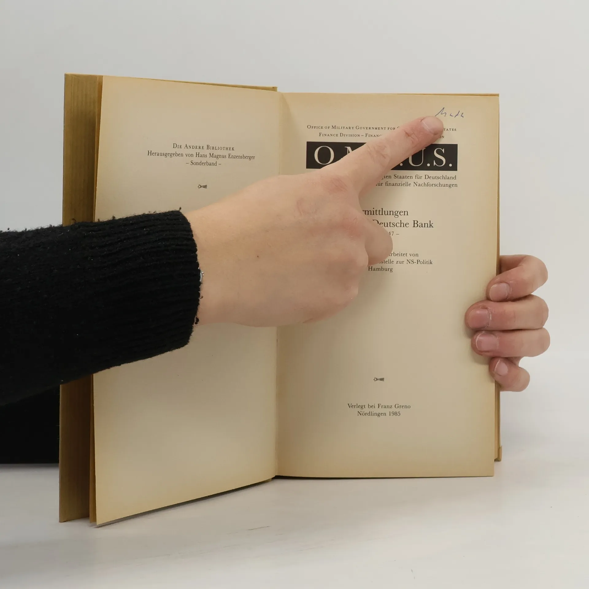 übersetzt Und Bearbeitet Von Der Dokumentationsstelle Zur Ns-politik Hamburg. At Head Of Title: O.m.g.u.s., Office Of Military Government For Germany, United States, Finance Division, Financial Investigation Section ...