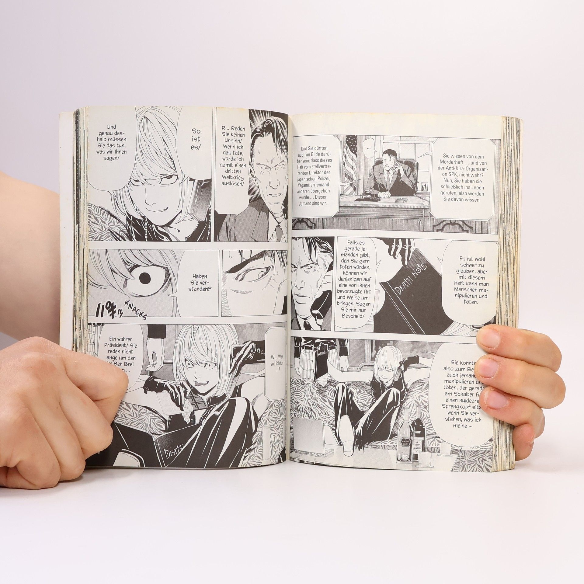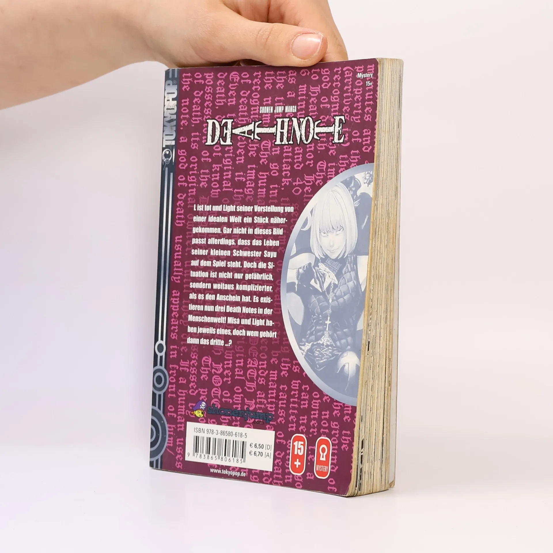 L ist tot und Light seiner Vorstellung von einer idealen Welt ein Stück nähergekommen. Gar nicht in dieses Bild passt allerdings, dass das Leben seiner kleinen Schwester Sayu auf dem Spiel steht. Doch die Situation ist nicht nur gefährlich, sondern weitaus komplizierter, als es den Anschein hat. Es existieren nun drei Death Notes in der Menschenwelt! Misa und Light haben jeweils eines, doch wem gehört dann das dritte Death Note.?